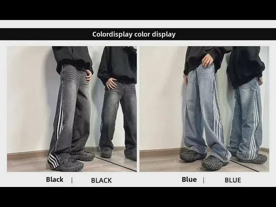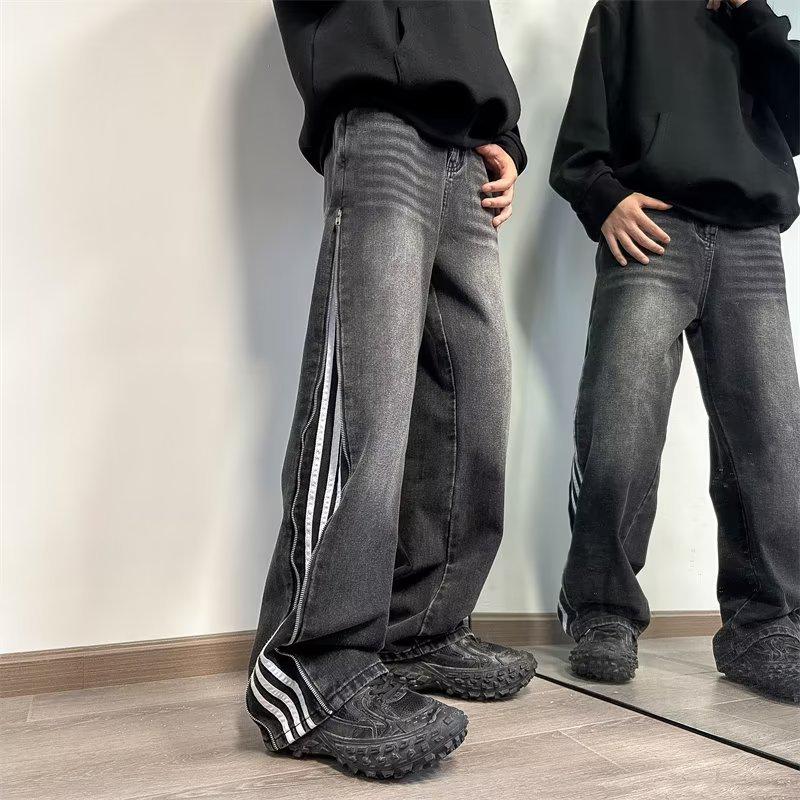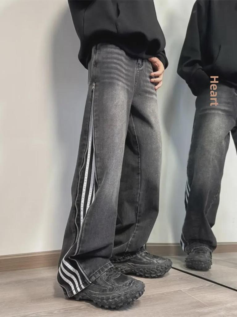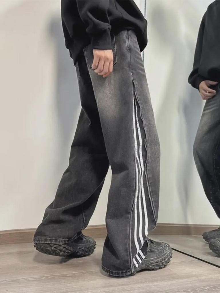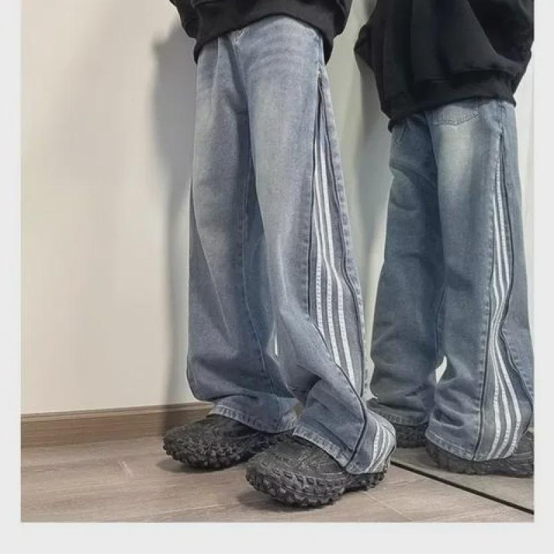 Мужские модные американские ретро-рваные широкие джинсы с полосками