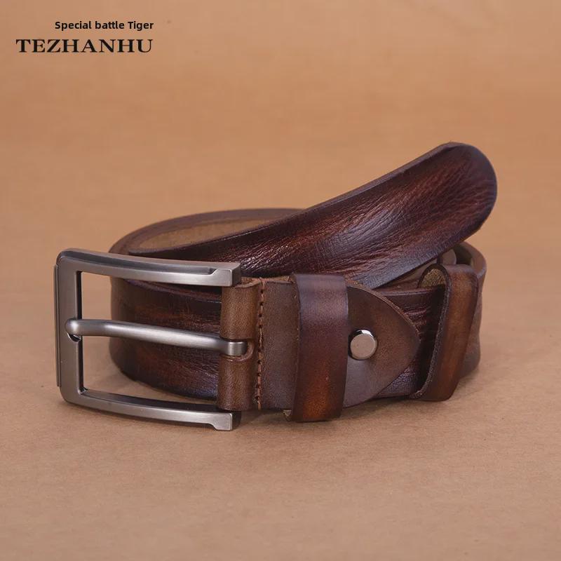 Мужской ремень из натуральной кожи - первый слой коровьей кожи, растительное дубление, ретро-деловой стиль, подарочный вариант — купить товар онлайн с бесплатной доставкой по всему миру!