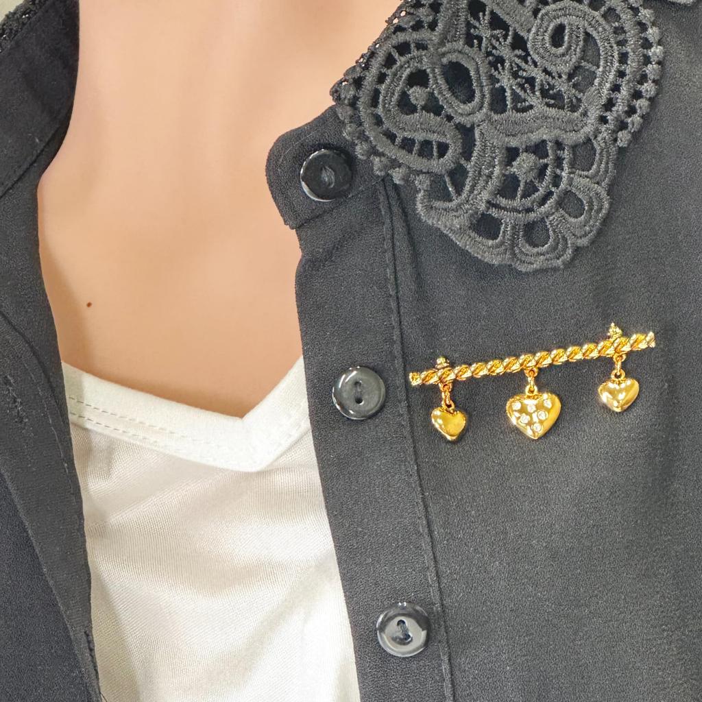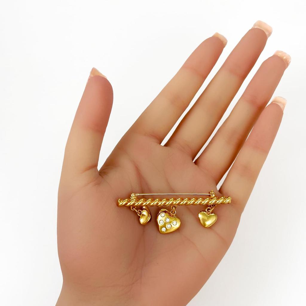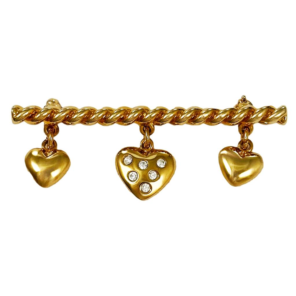 Винтажная брошь Винтажные аксессуары KEYES Сделано в Канаде Золото 22KGP Три сердца Прозрачный 111701 [Выбор Raport]