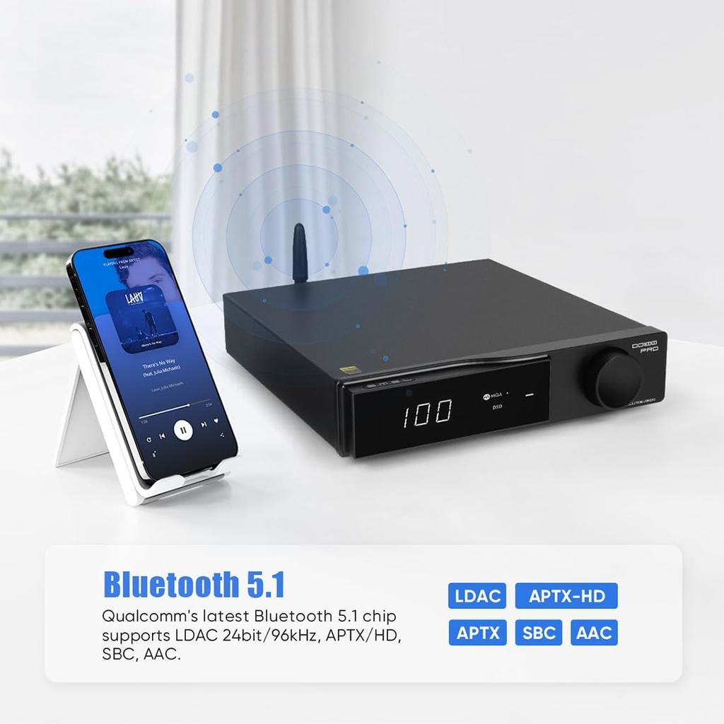 [Bluetooth5.1 LDAC] DO100PRO оснащен чипом QCC5125 Bluetooth5.1 и поддерживает передачу звука LDAC 24 бит/96 кГц, APTX/HD, SBC, AAC.. Вы можете в любое время подключиться к своему мобильному телефону или компьютеру через Bluetooth и наслаждаться высококачественной музыкой.