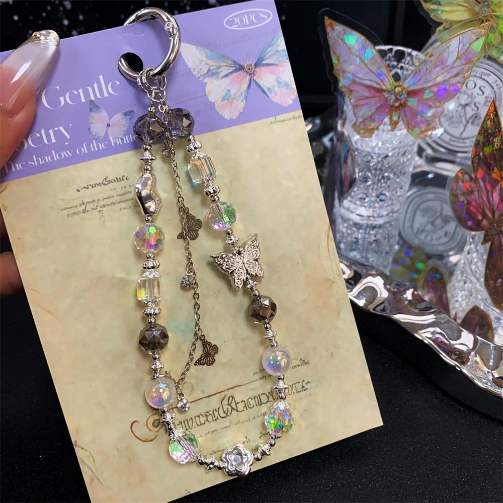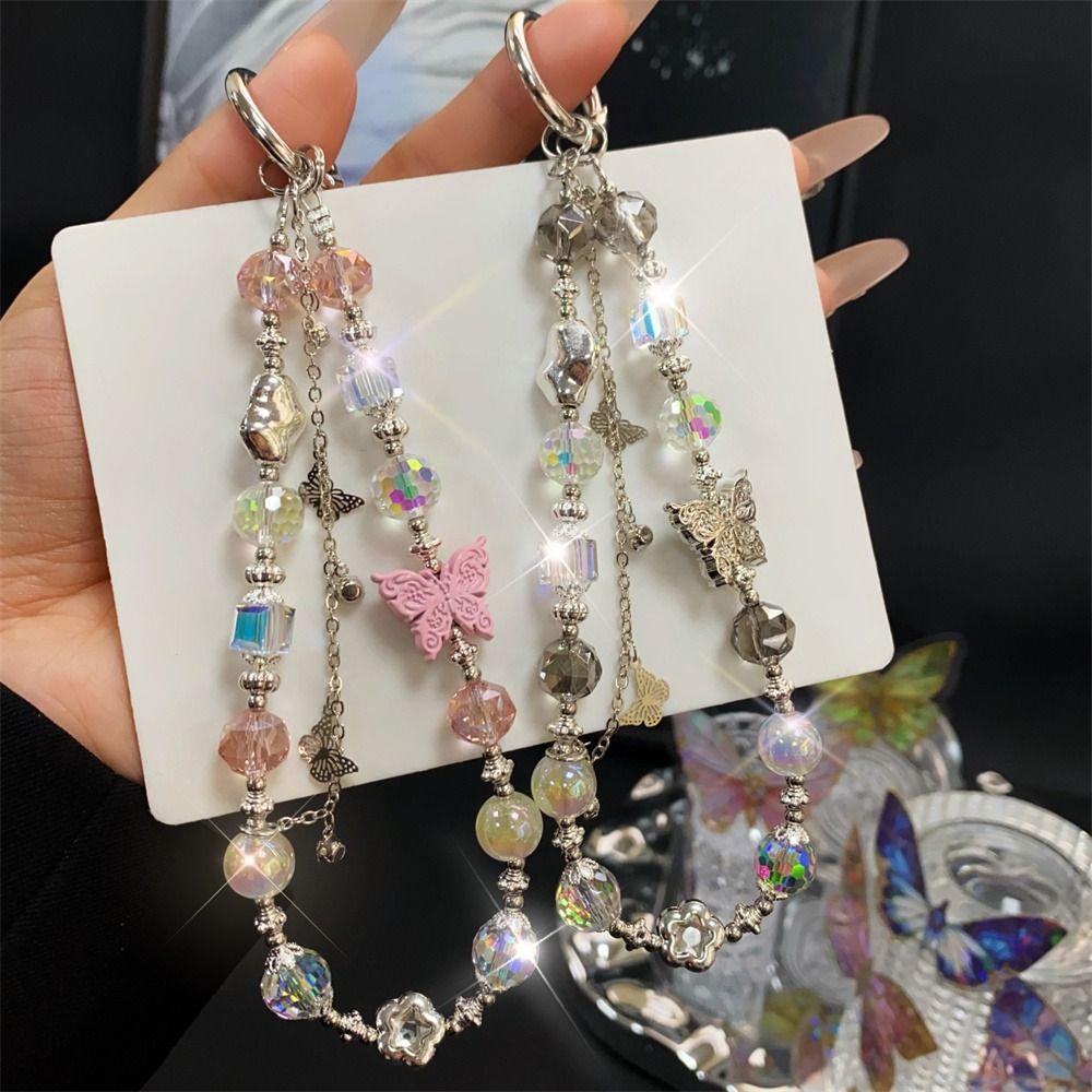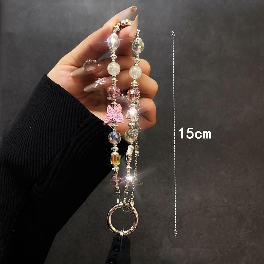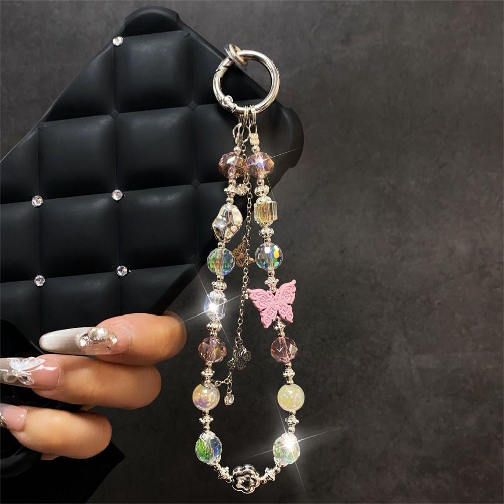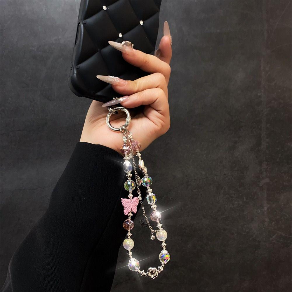 Прозрачная цепочка для телефона с бабочкой из хрустальных бусин, съемная цепочка на запястье с кристаллами для женщин и девочек