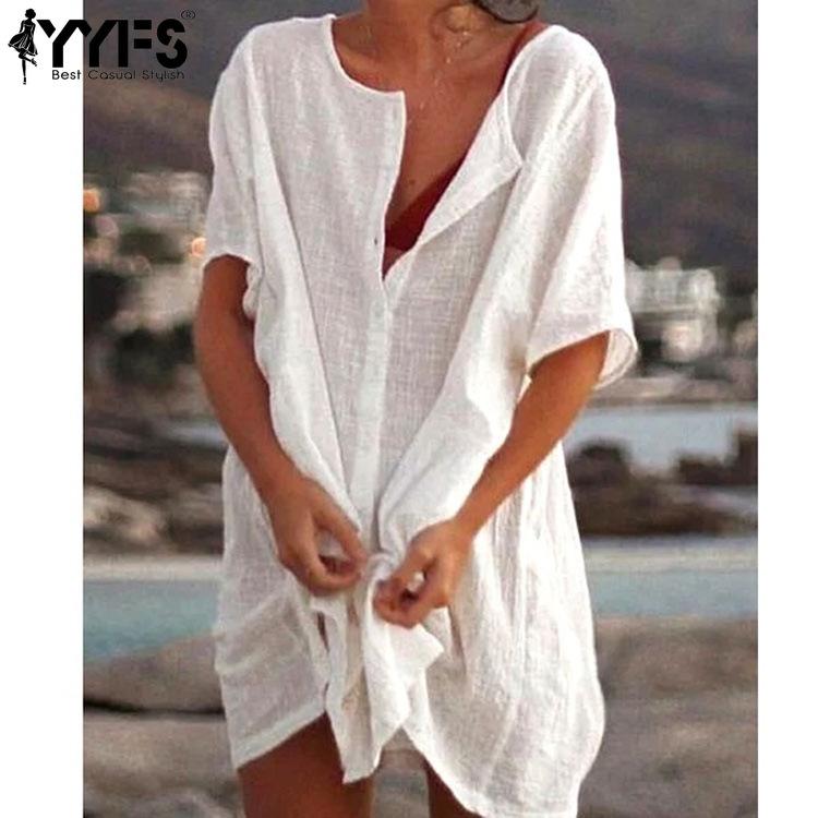 YYFS Женские модные повседневные летние весенние однотонные блузки и рубашки с v-образным вырезом и короткими рукавами с принтом — купить товар онлайн с бесплатной доставкой до всему миру!