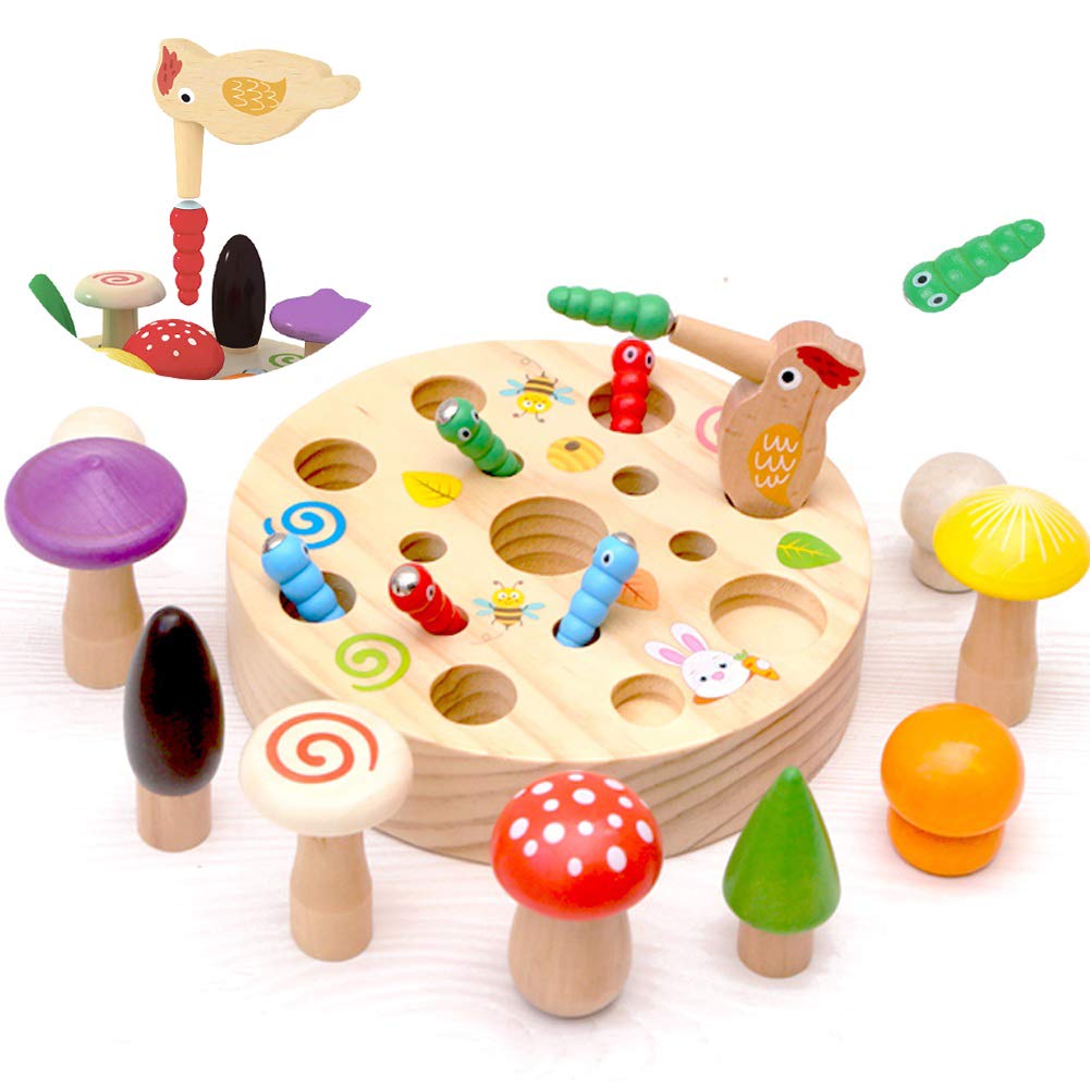 CORPER TOYS Деревянный пазл, пазл с подгонкой, магнитная игрушка, магнитная игрушка, игрушка для рыбалки, насекомое, гриб, для мальчиков и девочек, милая игрушка для дома, красочная головоломка