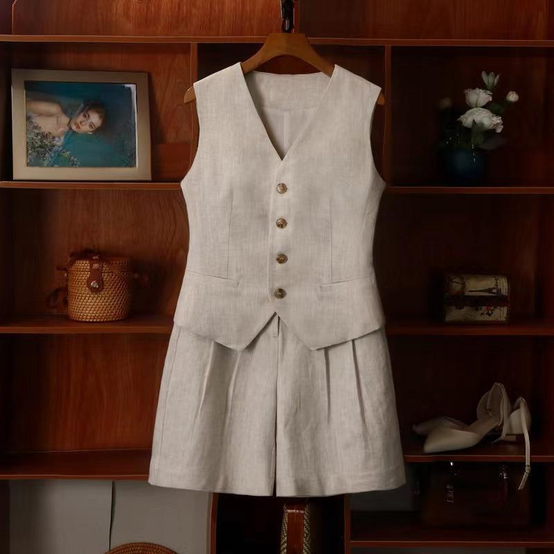 Жилет шорты костюм женский летний тонкий верхняя одежда жилет Pony Clip