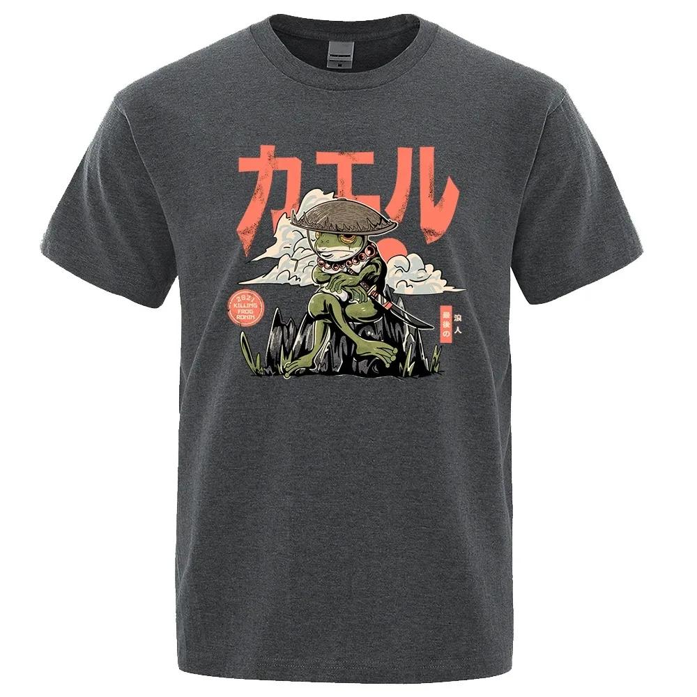 Футболки с принтом аниме «The Last Frog Samurai», мужские повседневные дышащие футболки, модные рубашки с круглым вырезом, свободный топ из хлопка с коротким рукавом