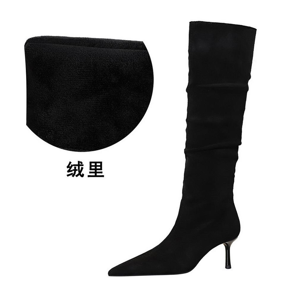 Универсальные высокие сапоги женские сапоги на среднем каблуке с тонким острым каблуком замшевые ретро складные высокие сапоги-трубы