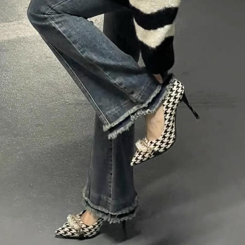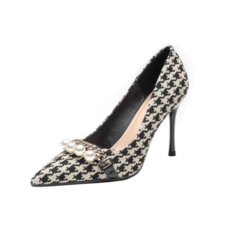 Поставка Qiandongge жемчужные высокие каблуки заостренные головки неглубокие горлышки высокие каблуки одинарные туфли светская львица Qiandongge жемчужные высокие каблуки женщины