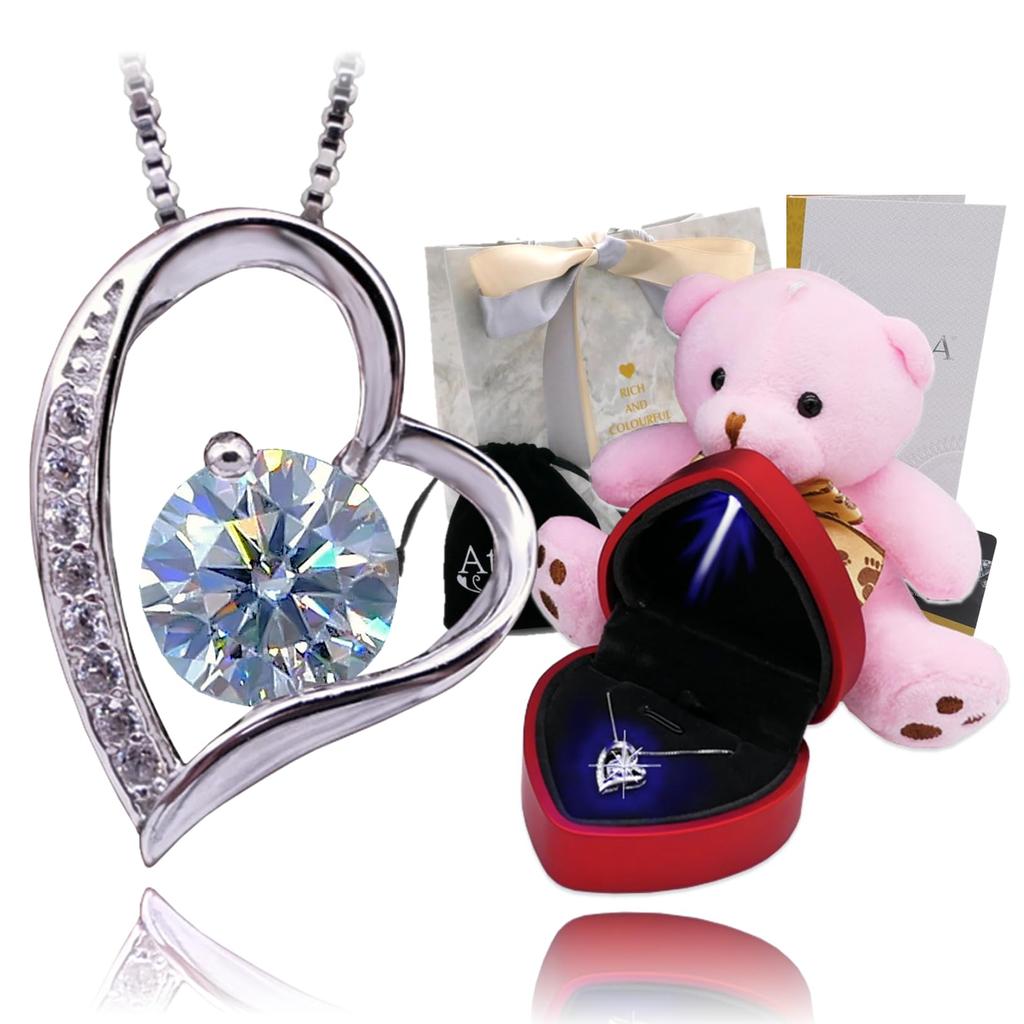 Муассанит — популярный подарок на помолвку в Европе и Америке.. В сочетании с ожерельем в форме сердца с элегантной отделкой, которая имеет привлекательный и особый блеск.. С помощью скользящего регулятора вы можете отрегулировать длину в соответствии с современной модой во время ношения.. Чтобы создать незабываемые впечатления, мы включили в комплект сюрприз-шкатулку для драгоценностей и медведя, который будет заботливо за вами присматривать.
