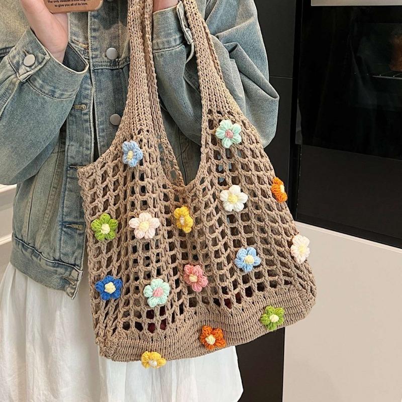 Сумка-тоут Lazy Crochet, женская, весенняя, простая, для поездок на работу, многофункциональная, большой емкости, через плечо