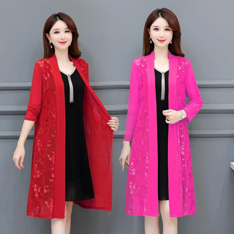 Средний возраст леди кардиган тонкий стиль солнцезащитная одежда топы пальто женская летняя шаль длинная солнцезащитная одежда куртка