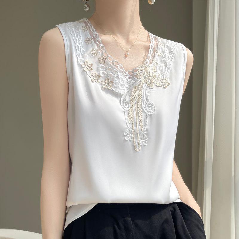 Брендовые кружевные топы-камисоль для женщин носят свободные атласные топы без рукавов с весенним и осенним низом летом