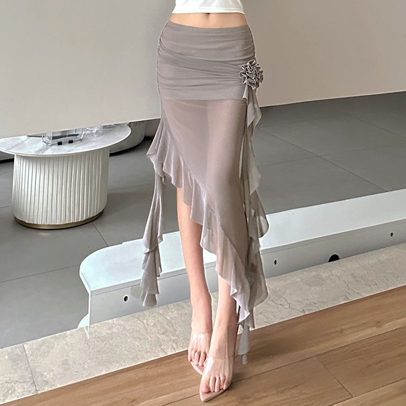 Женская летняя плиссированная юбка с оборками, сетчатая пэчворк, винтажная длинная юбка для вечеринок, узкая вечерняя юбка с высокой талией