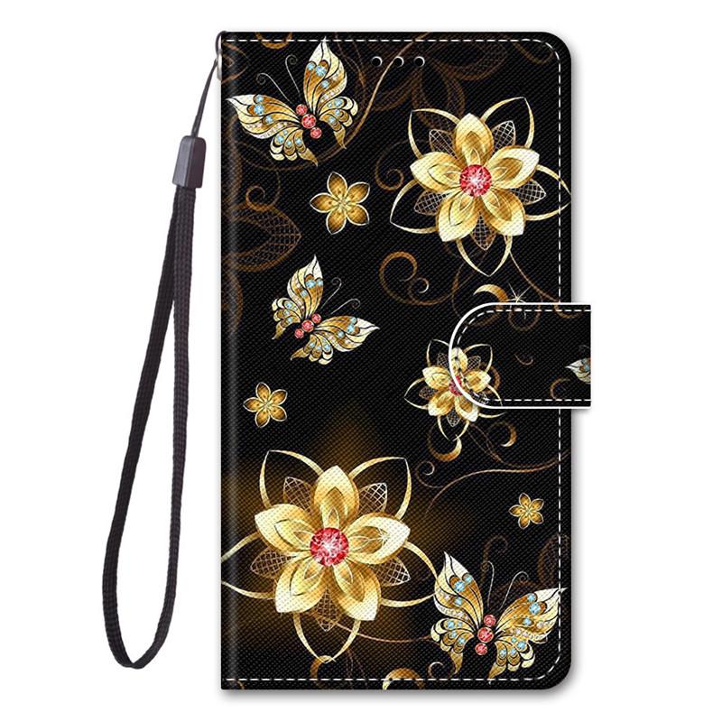 Золотой узор в виде бабочки, откидная крышка для карт, держатель, чехол-кошелек для iPhone, Samsung, Huawei, Honor, Xiaomi, Redmi, OPPO, Realme, Moto, Asus
