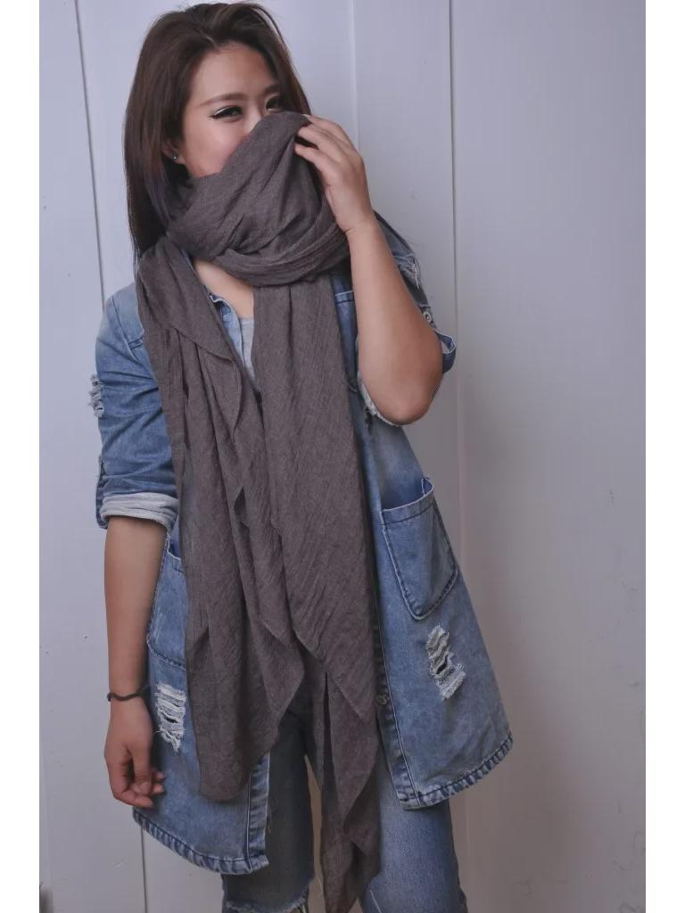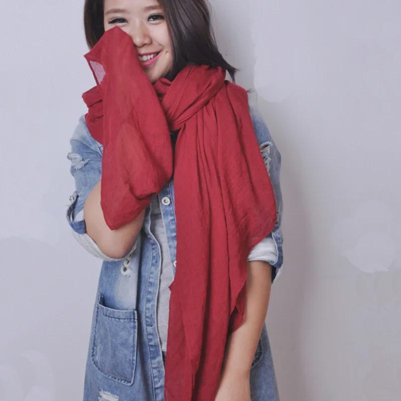 Высококачественный японский шарф из хлопка и льна цвета конфет на осень/зиму для женщин