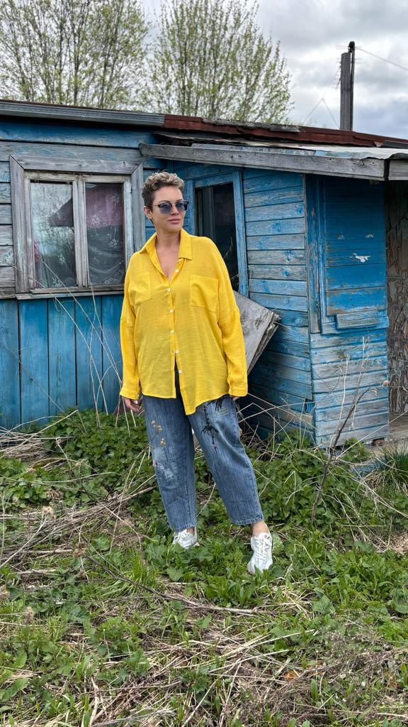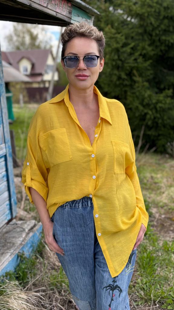 Жёлтая рубашка 💛☀️ Всем солнечный приветик 👋😉 Замечательная 🤩 Носите как первым слоем, так же можно и вторым, надевая на топ, футболку и даже купальник 🥰 Заказала размер 3XL Села на мне очень-очень свободно, как я и хотела 😃 На мамуле по фигуре 😊 Рубашка на высокий рост отлично подойдёт 🔥 Мамулины параметры: 🎗рост 157см 🎗вес 78кг 🎗длина плеч 42см 🎗объём груди 114см 🎗объём талии 97см 🎗объём бёдер 114см. Мои параметры: 🎗 рост 160см 🎗 вес 54кг 🎗 длина плеч 40см 🎗 объём груди 93см (75D) 🎗 объём талии 63см 🎗 объём бёдер 93см. Качество: 💛 ткань натуральная, похожа на марлёвку ☀️ ткань легкая и полупрозрачная, приятная к телу 💛 не тянется ☀️ классический фасон 💛 на груди 2 накладных кармана ☀️ плечи приспущены 💛 рукава и пройма широкие ☀️ на манжетах по пуговице 💛 рукав можно загнуть и закрепить хлястиком ☀️ пуговицы небольшие, белые, пластиковые 💛 швы ровные ☀️ качество отличное. Точные замеры рубашки в 3XL: 📏 ОГ - 116см 📏 объём низа рубашки - 112см 📏 плечи - их нет 📏 длина рукава от воротника - 76см 📏 длина рубашки от плеча - 74см 📏 объём проймы - 44см 📏 объём манжеты - 24см. Мы рубашкой довольны очень-очень и рекомендуем её всеми ручками 🤗💞 Спасибо, продавцу и Джуму 😘 Чмок-чмок-чмок, всех кто со мной на Джуме 😘 Желаю удачных покупок 🛍😊 терпения 🤗 и весны в душе 🌈☀️🌱🦋🌼💕🐞🌳🕊 До скорого 🙌😊 Песня во втором видео: German Geraskin "Bad Side" 🎶💃🎶