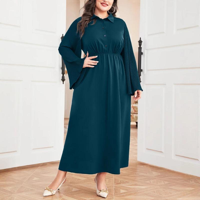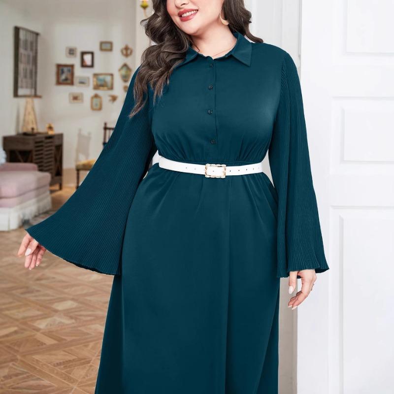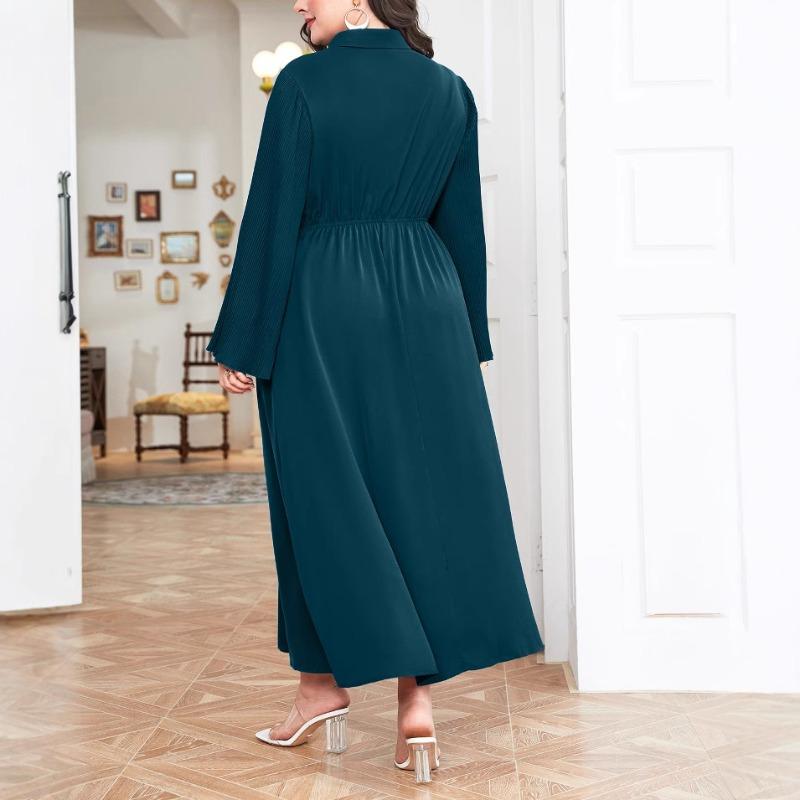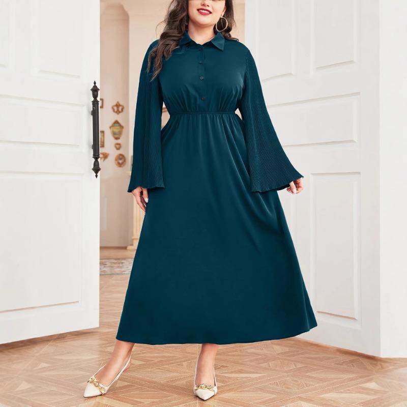 Плюс Размер Женское Осеннее Свободное Винтажное Однотонное Рубашечное Воротник Темпераментное Пригородное Литературное Платье с Завышенной Талией
