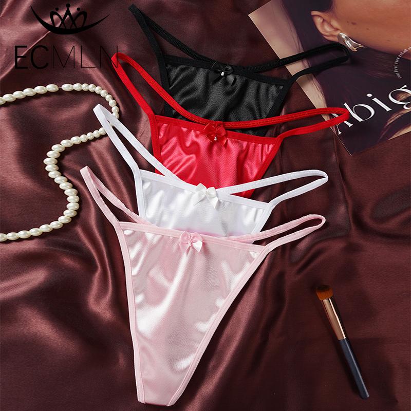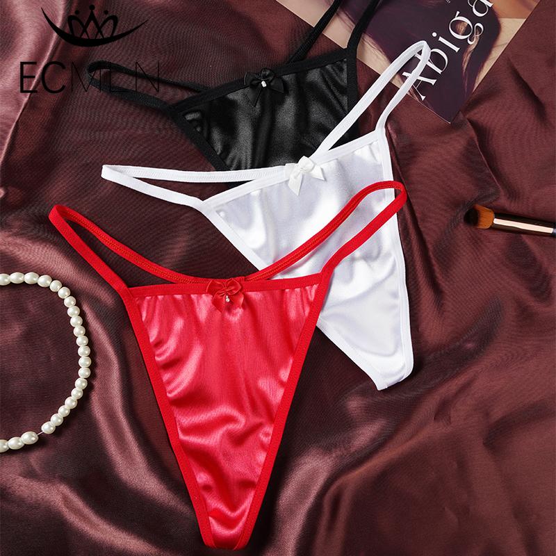 Женские сексуальные трусики-стринги, атласные трусики с Т-образной спинкой, бесшовные трусики-стринги с низкой талией, бикини-трусы