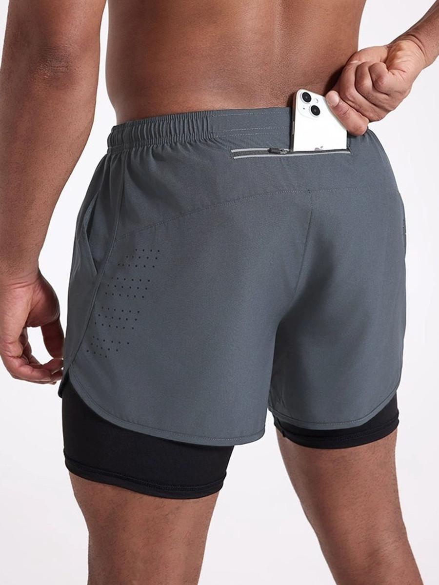 Мужские шорты 2-в-1, двухслойные, со встроенным карманом, быстросохнущие, подходят для занятий в спортзале, фитнесом, пилатесом, спортом на открытом воздухе, бегом, теннисом, бадминтоном