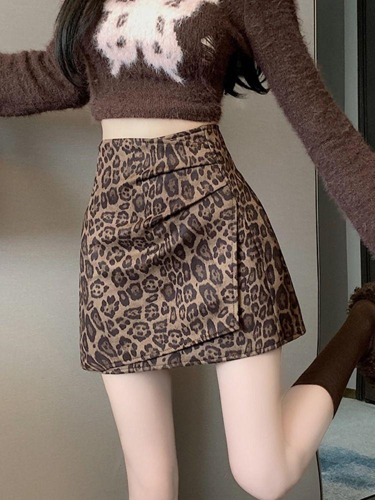 Юбка с леопардовым принтом в стиле ретро для женщин, короткая юбка с высокой талией Y2K