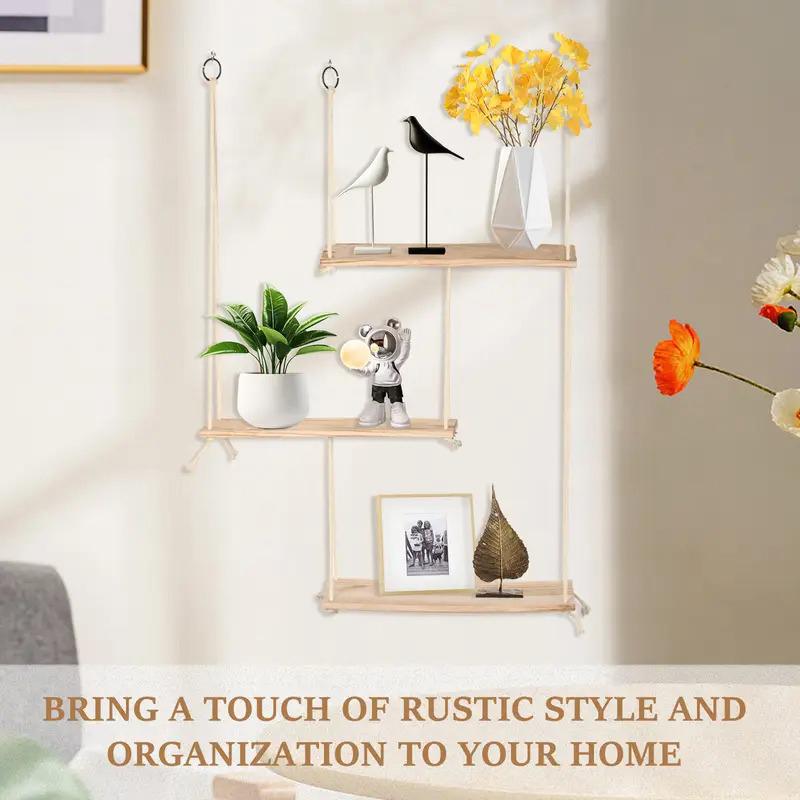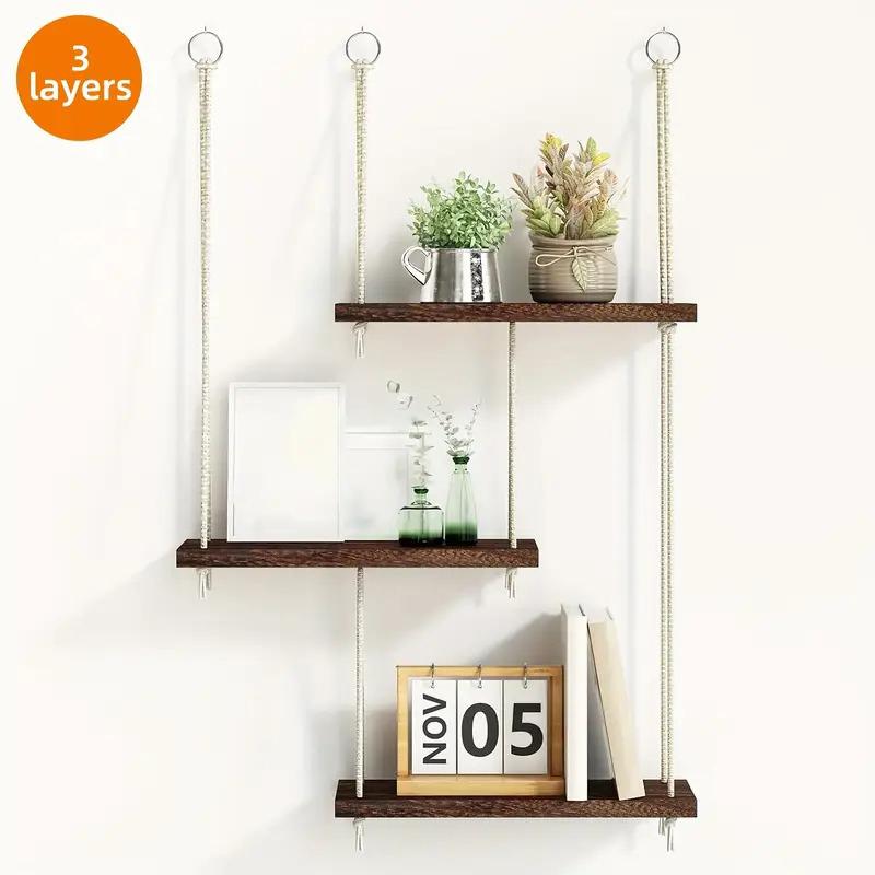 3-х уровневые настенные полки, регулируемая подвесная стойка для растений, украшение для гостиной, настенная полка в стиле макраме для дома, 2 цвета