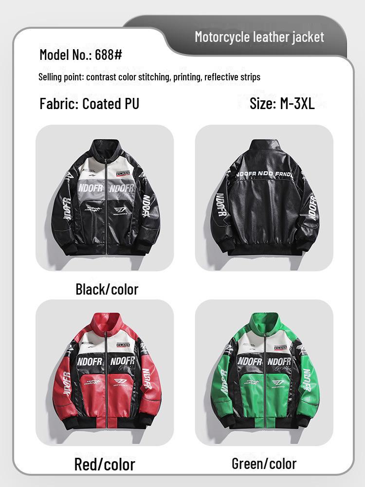 2024 Мужская стильная контрастная гоночная кожаная куртка для мотоцикла - мода в Гонконге