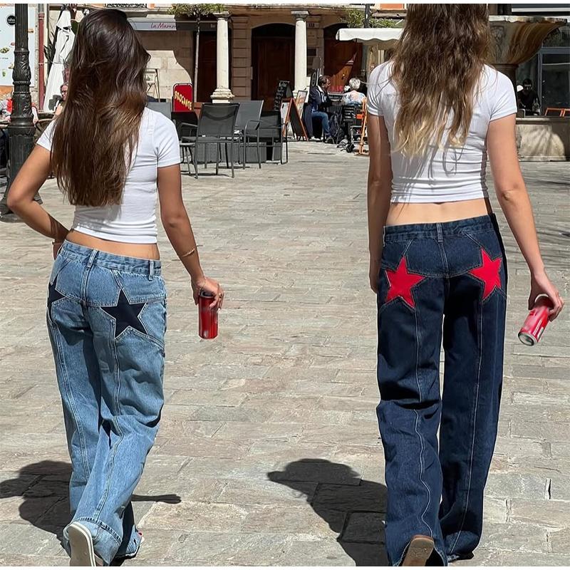 Винтажные мешковатые джинсы с низкой посадкой, женские свободные джинсы-бойфренды Y2k, прямые, широкие, модные, эластичные, длинные, джинсовые брюки