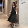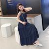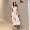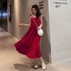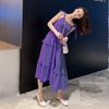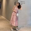 Летнее новое однотонное платье с бантом и сексуальными бретельками, женское ретро-платье с высокой талией, повседневное свободное длинное платье, женское модное облегающее элегантное платье с оборками 26371