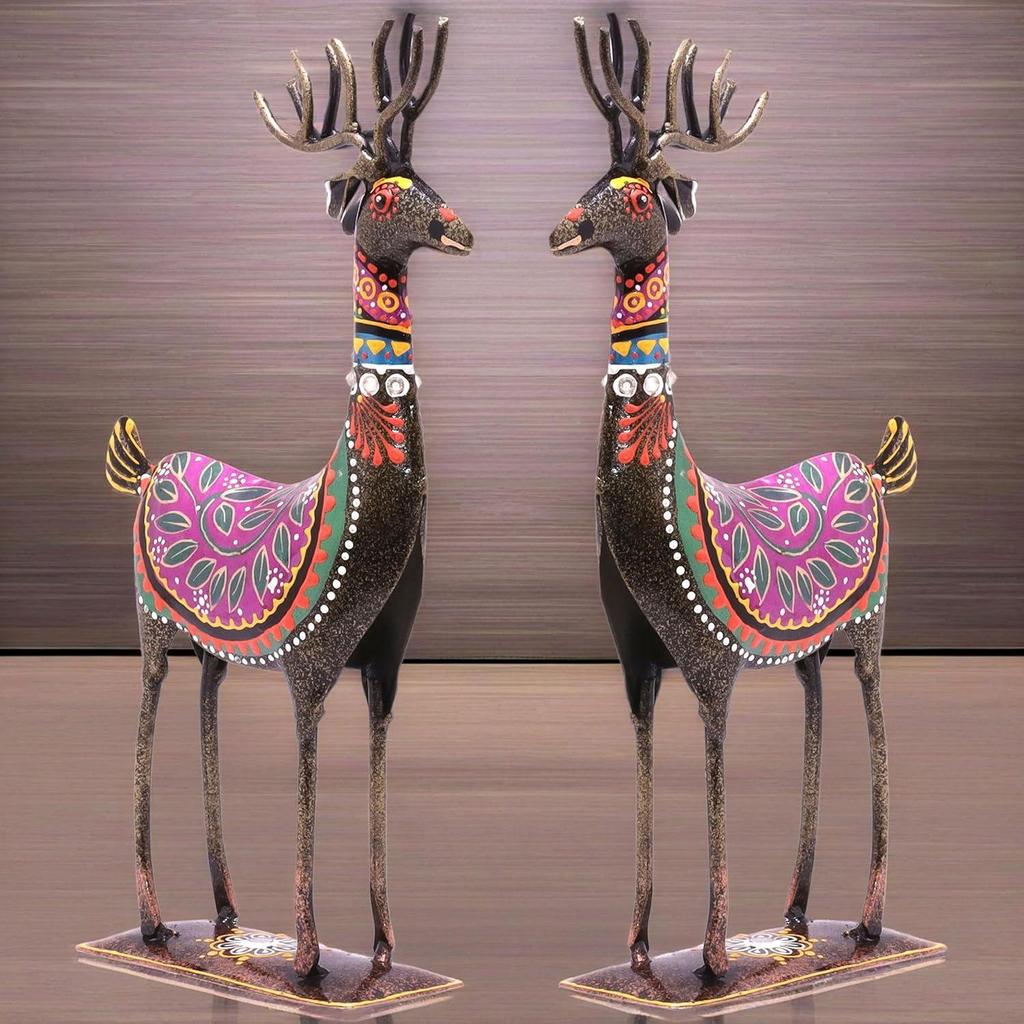 Яркий набор из 2 статуэток оленей: Это расписанные вручную железные фигурки оленей. (Набор из 2) демонстрируя яркое раджастханское искусство и