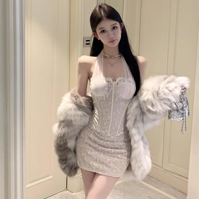 Женское знаменитое платье с отделкой под ключицу и шею в стиле «ветер роса»