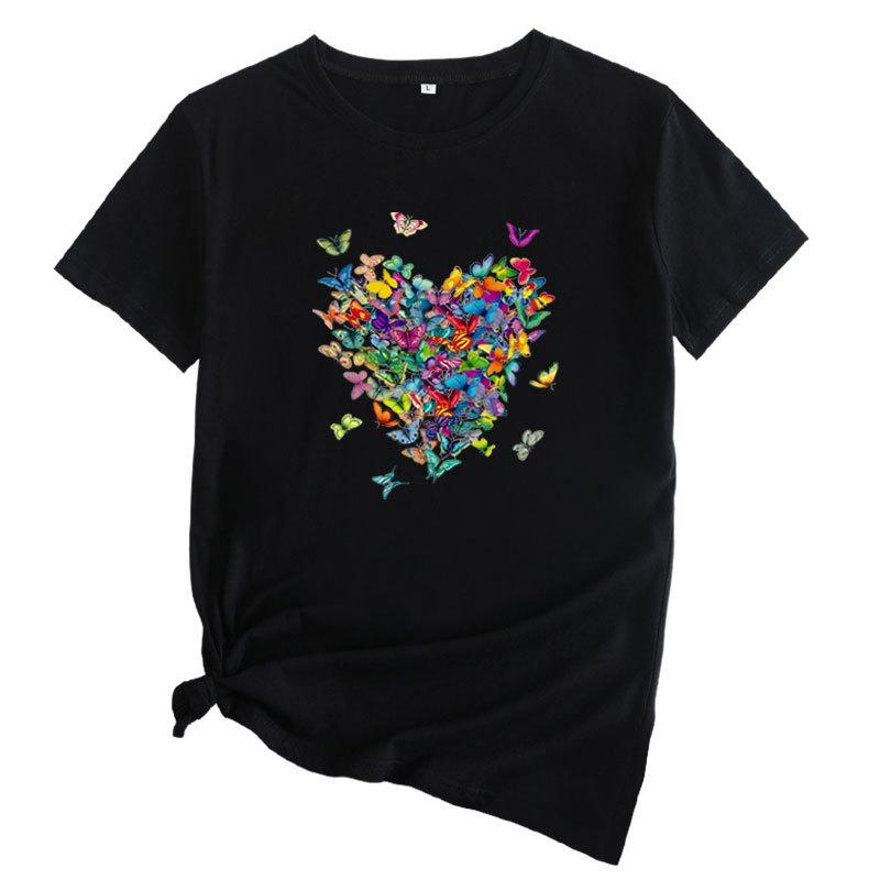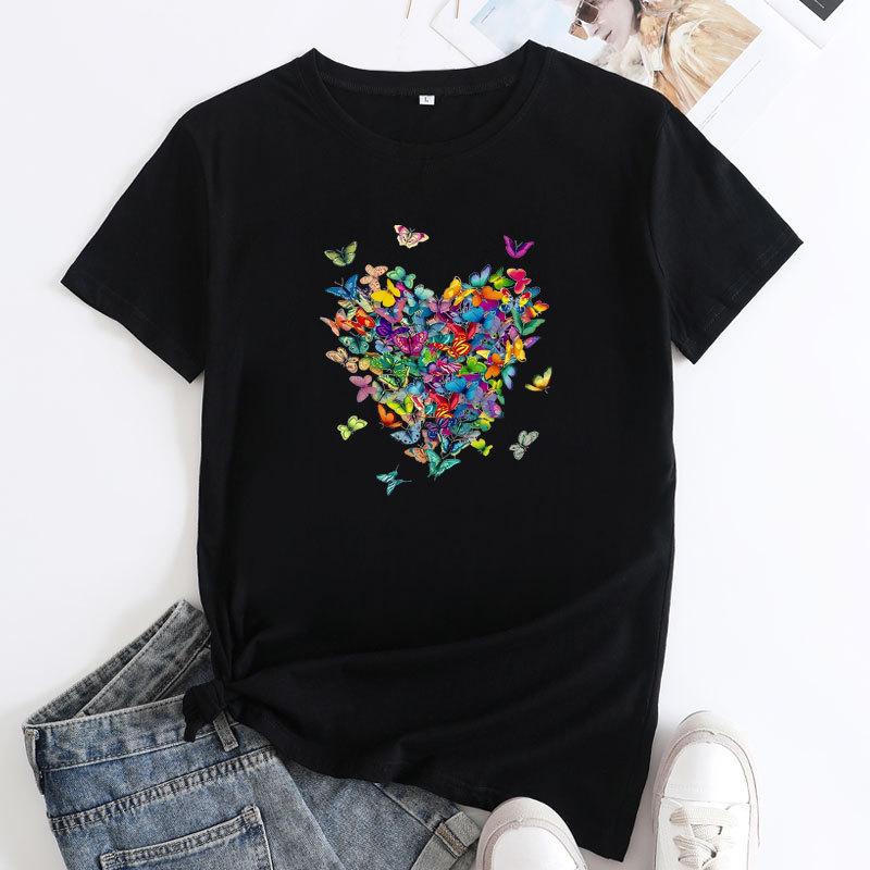 Летний топ с круглым вырезом и принтом в виде бабочек, модные повседневные женские футболки из чистого хлопка с короткими рукавами