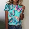 Женская футболка с принтом в виде 3D-бабочки, женская футболка с круглым вырезом, повседневная футболка Harajuku Y2k Fashion, свободный топ большого размера