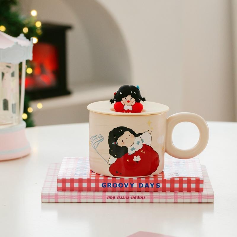 Милая кружка в форме сердца для девочек, высокая керамическая чашка, чашка для девочек, сувенир, подарочная кофейная чашка, бытовая чашка для питья