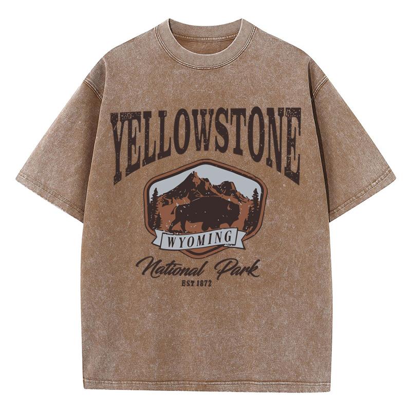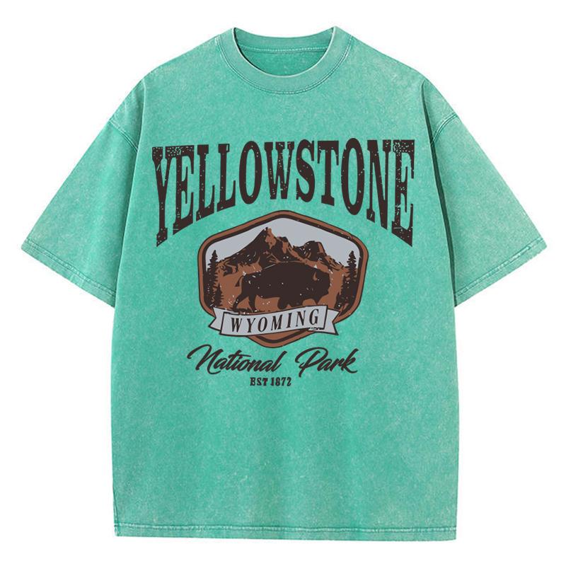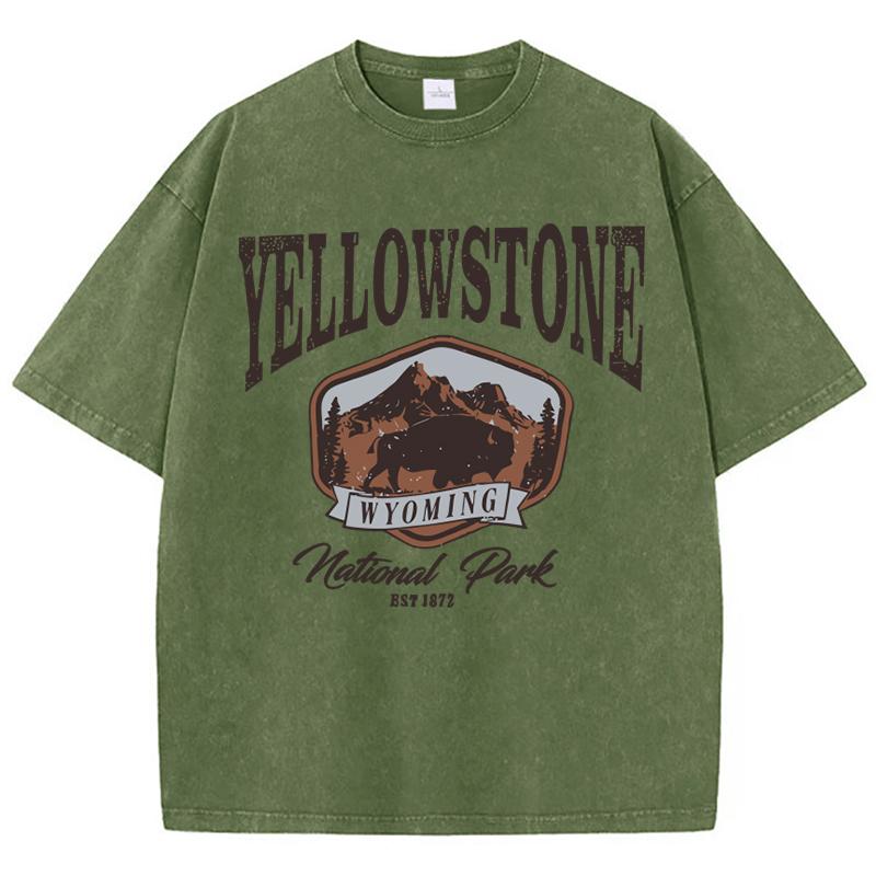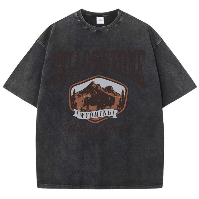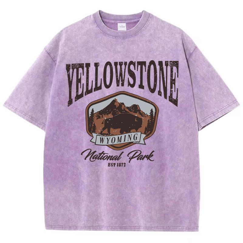 Женские хлопковые футболки с круглым вырезом и короткими рукавами, топы с принтом «Бизон в Йеллоустонском парке», летняя одежда