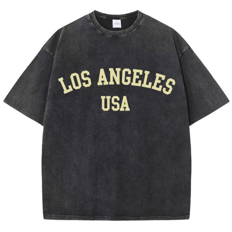Женские хлопковые стираные футболки All-Math Loose O-Neck Футболки Los Angeles U.S. Printed Short Sleeve Summer Street Women Clothing