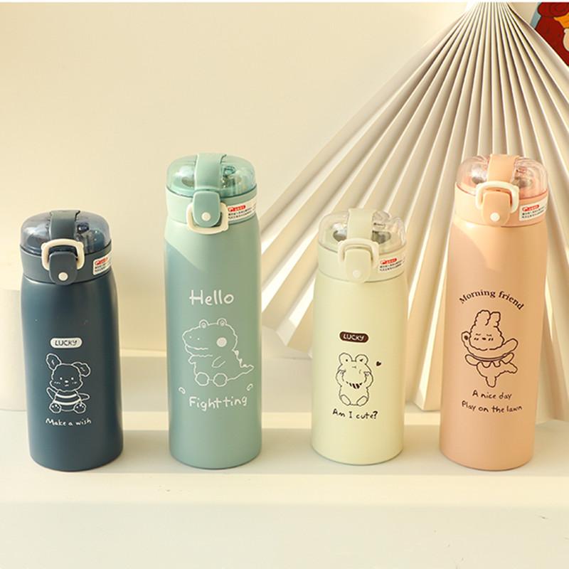 Портативная детская кружка-термос с соломинкой из нержавеющей стали, мультяшные термосы, детская милая термальная бутылка для воды, стакан, термокружка