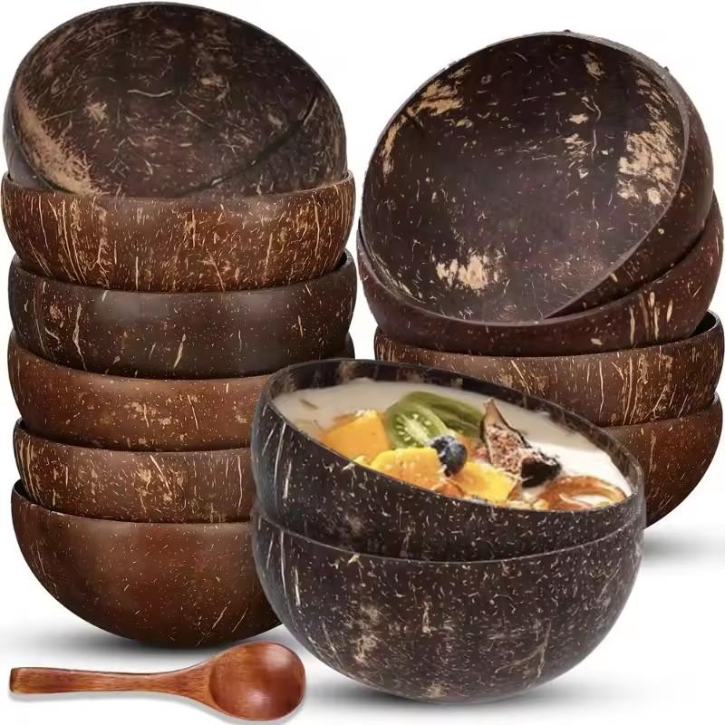 1 шт. Натуральные кокосовые миски, многоразовые деревянные миски из кокосовой скорлупы, набор кухонных столовых приборов для сервировки блюд, салатов, овсянки, йогурта