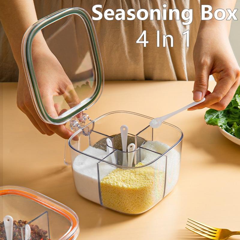 Коробка для приправ с несколькими сетками, ложками и герметичной крышкой, прозрачная банка для специй, миска для сахара и перца чили, влагонепроницаемый контейнер — купить товар онлайн с бесплатной доставкой до всему миру!