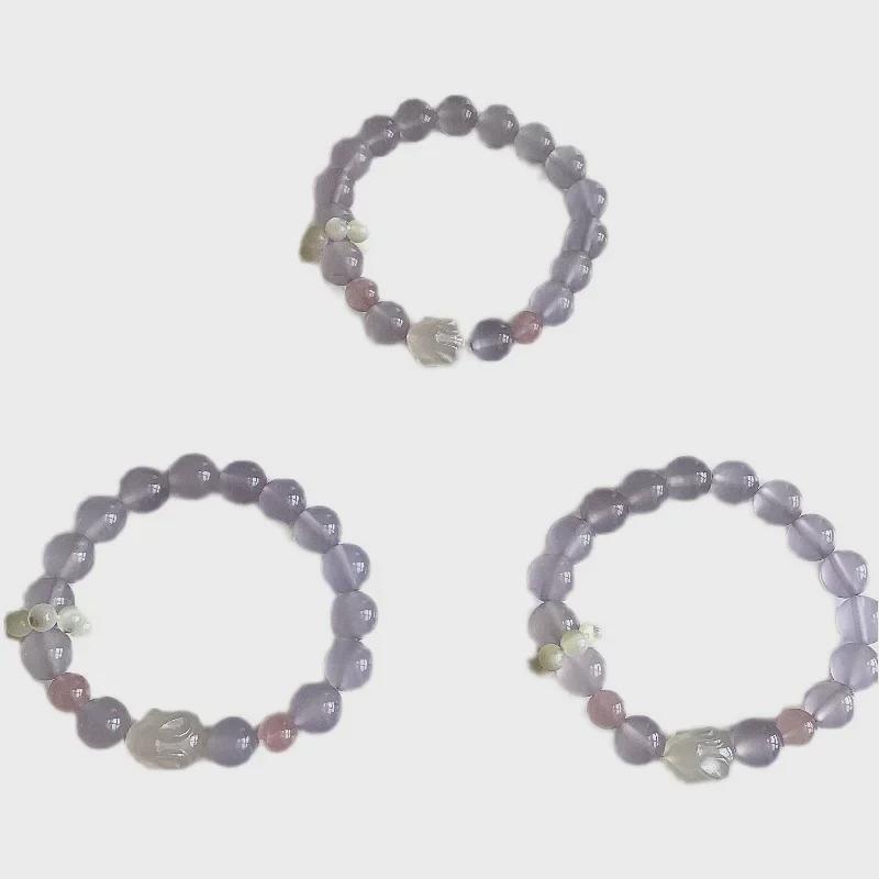 Браслет из фиолетового халцедона, личи, агата и клубничного кристалла для женщин и девочек