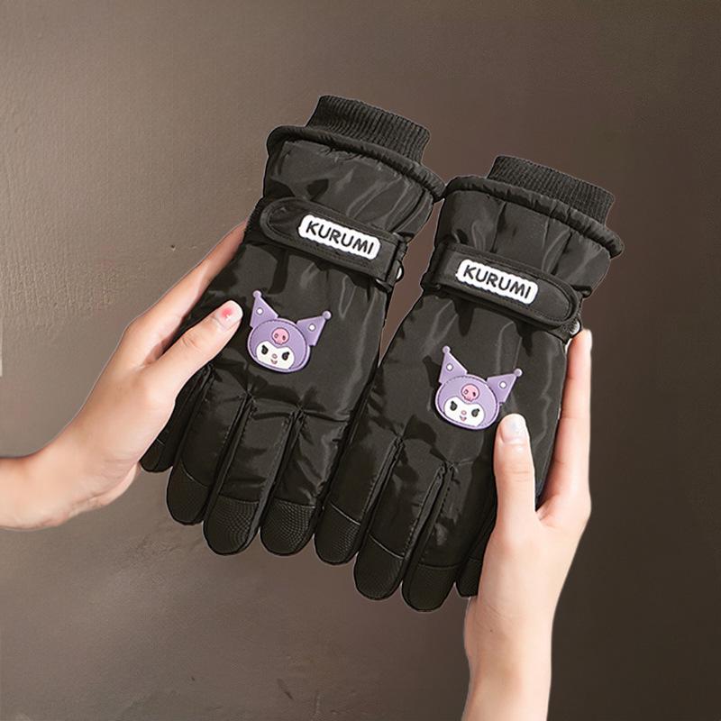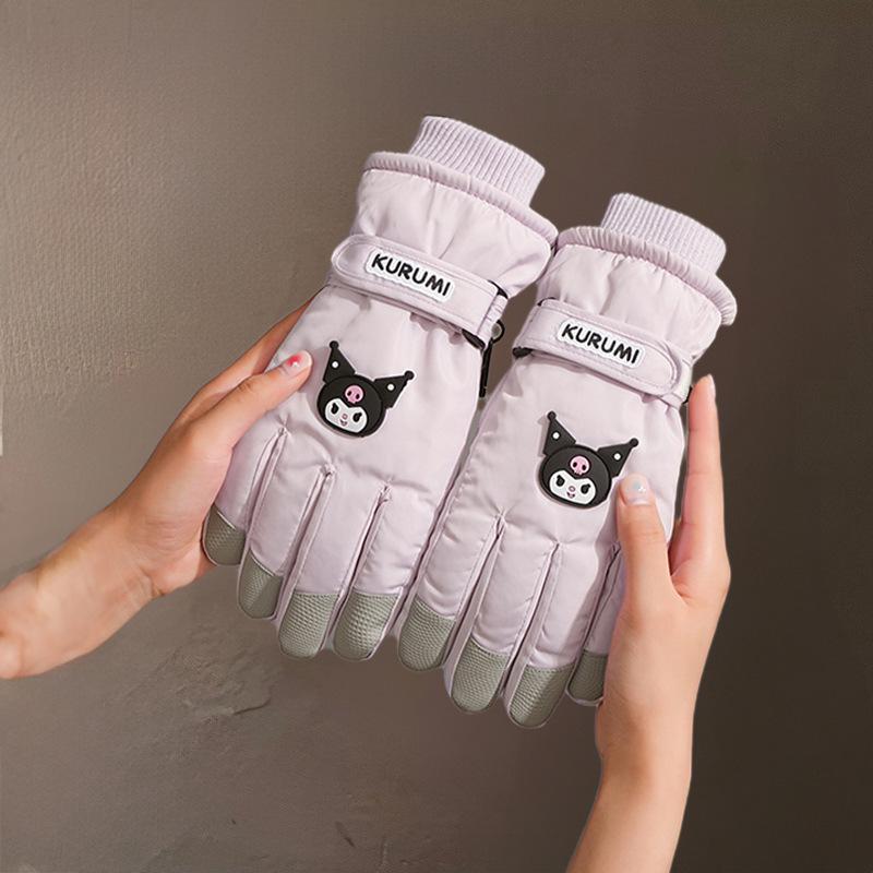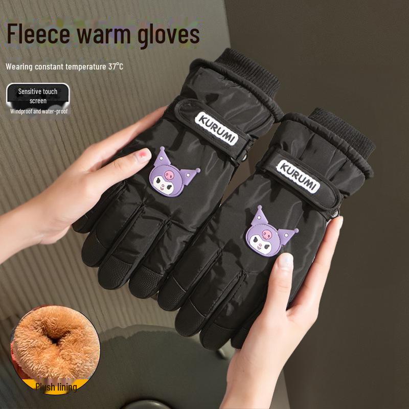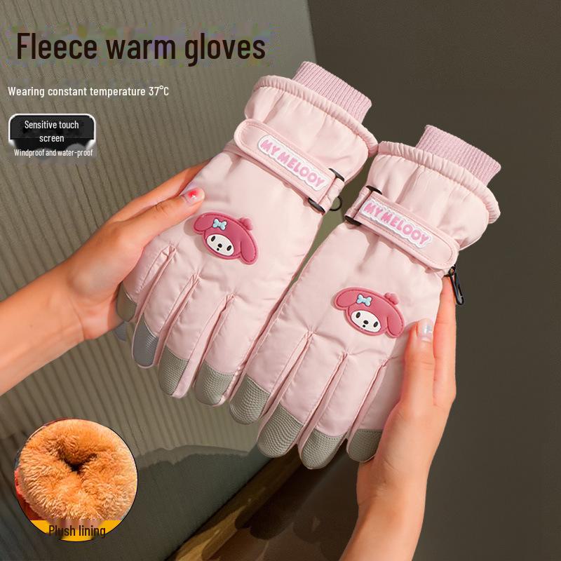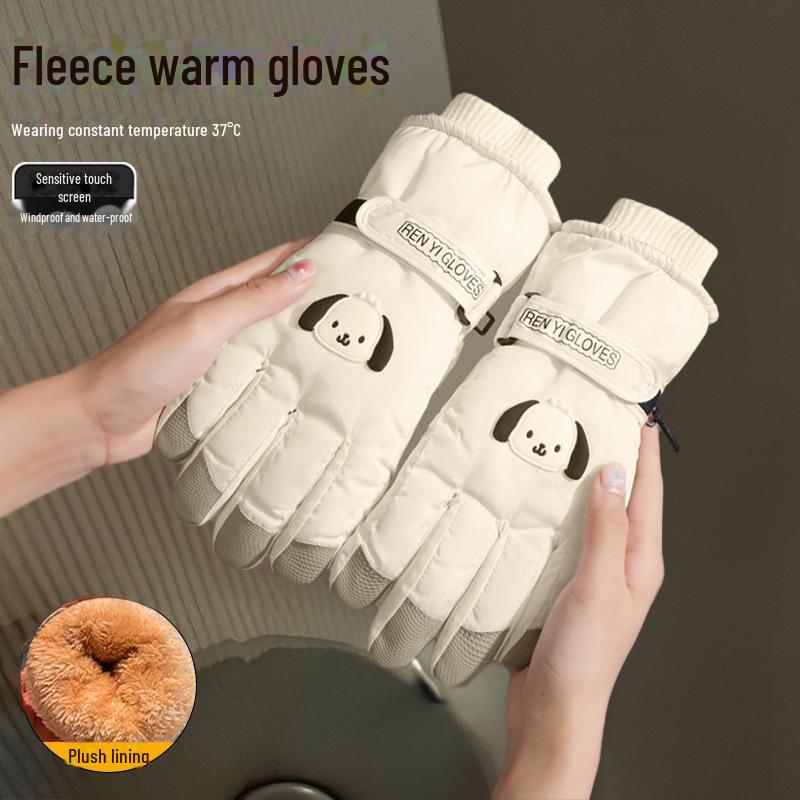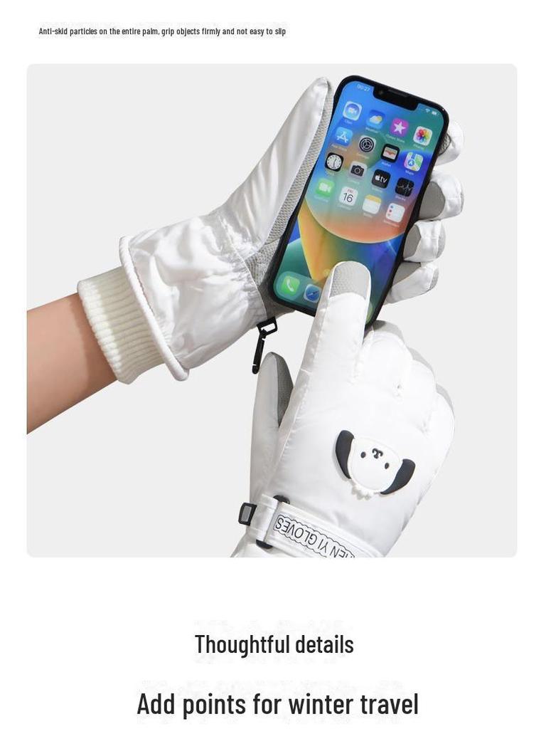 Трендовые ветрозащитные лыжные перчатки: Теплый, Милый Мультяшный Дизайн, Совместимый с Сенсорным Экраном, Брызгозащищенный, Бархатный Хлопок для Осени/Зимы.