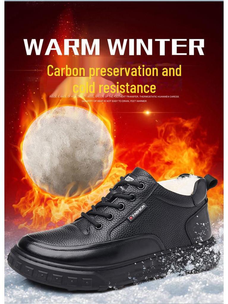 Мужские водонепроницаемые зимние ботинки из хлопка - нескользящие бархат и кожа, теплые повседневные зимние ботинки для пожилых людей