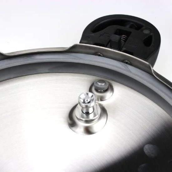 Материалы: Корпус/нержавеющая сталь, дно/алюминиевый сплав/нержавеющая сталь, крышка/нержавеющая сталь, ручка/фенольная смола (термостойкая температура 150 градусов)