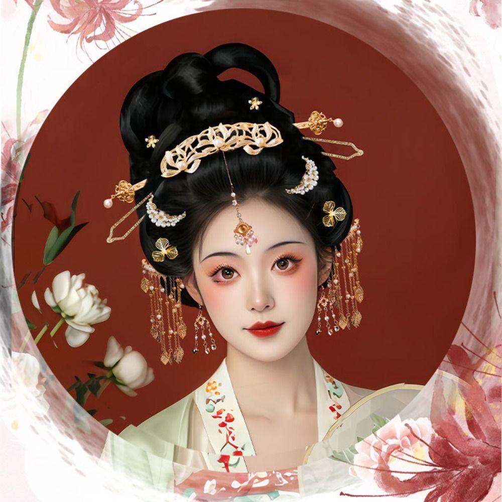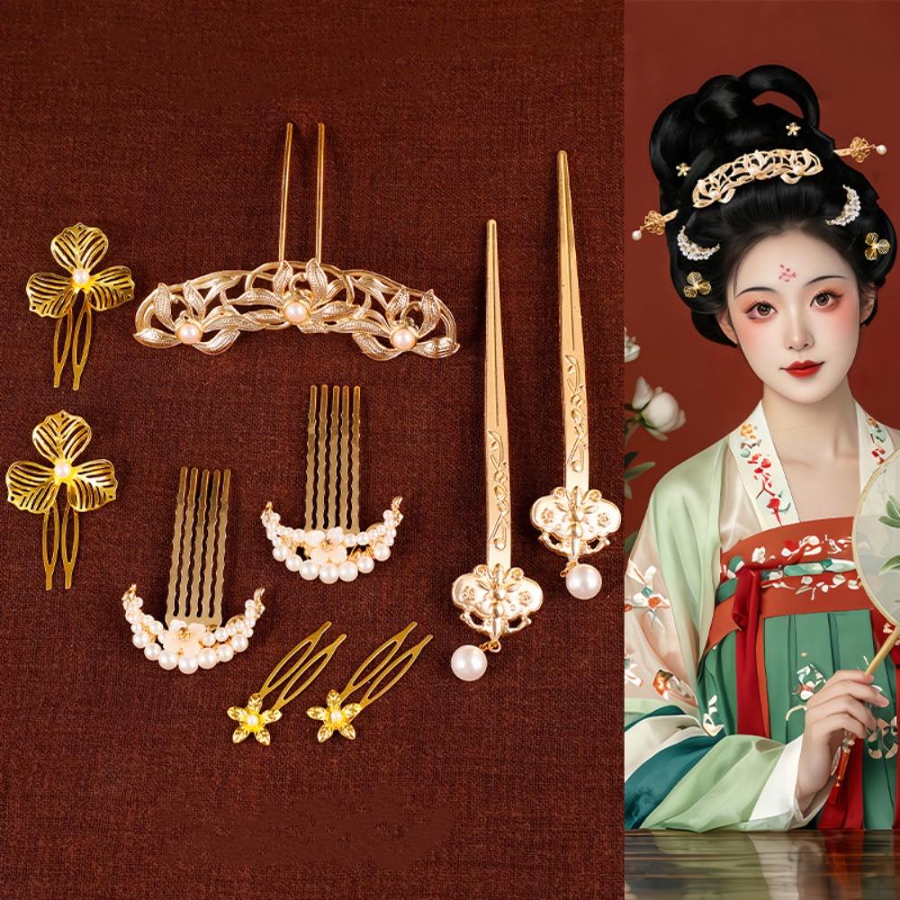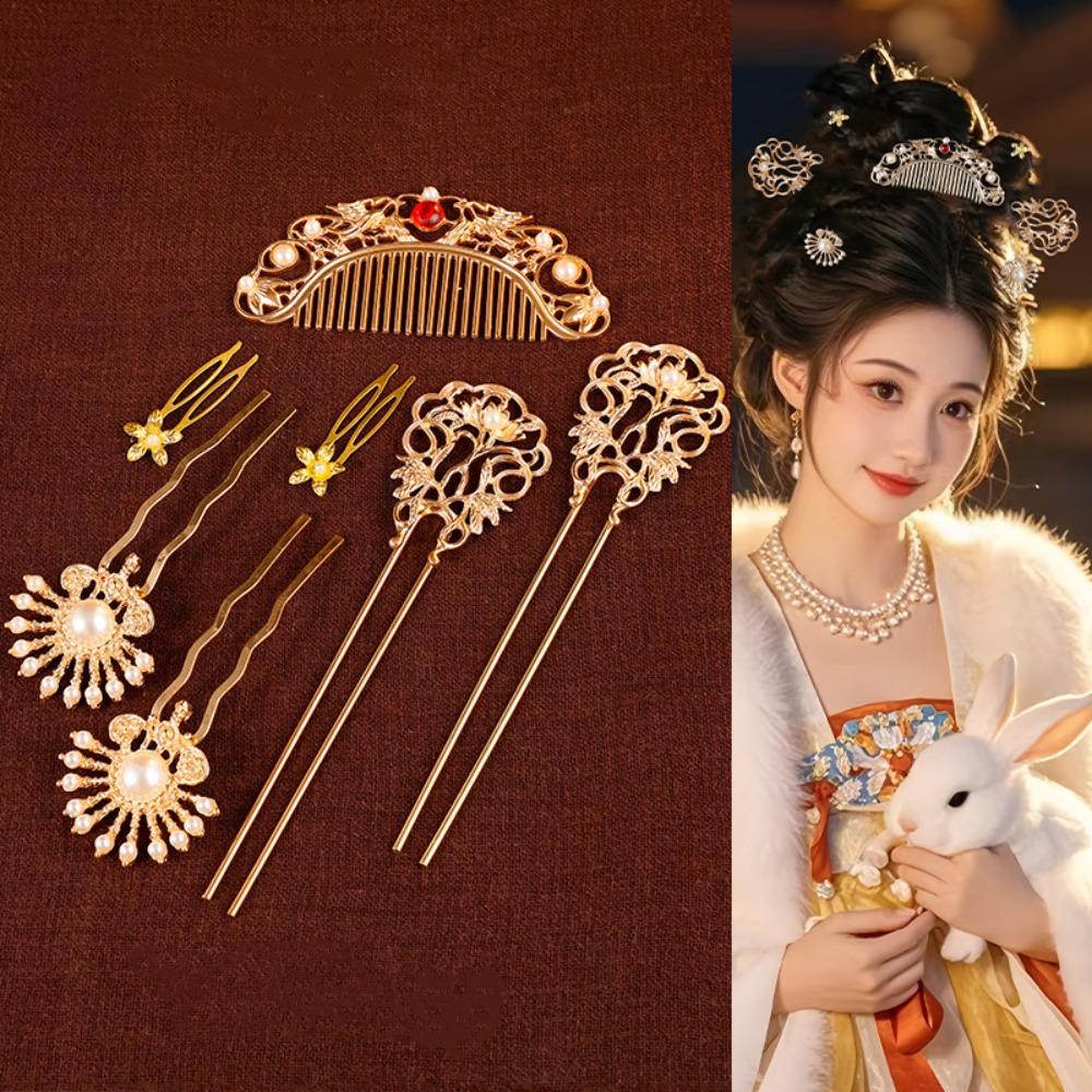 1 набор классических старинных палочек для волос с жемчужным цветком, гребень для волос в стиле ретро династии Тан, женская шпилька