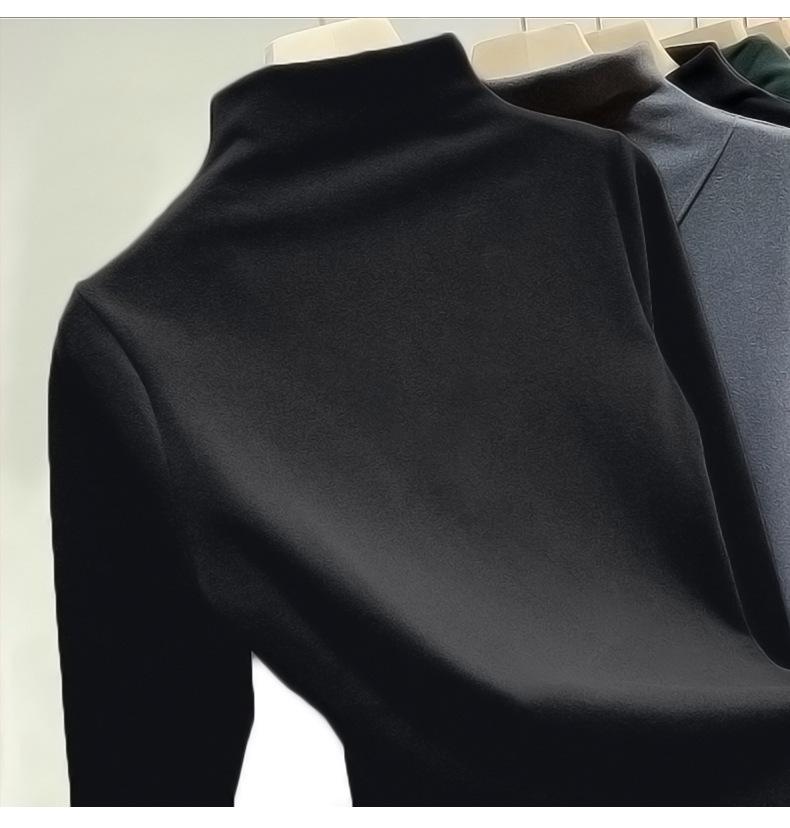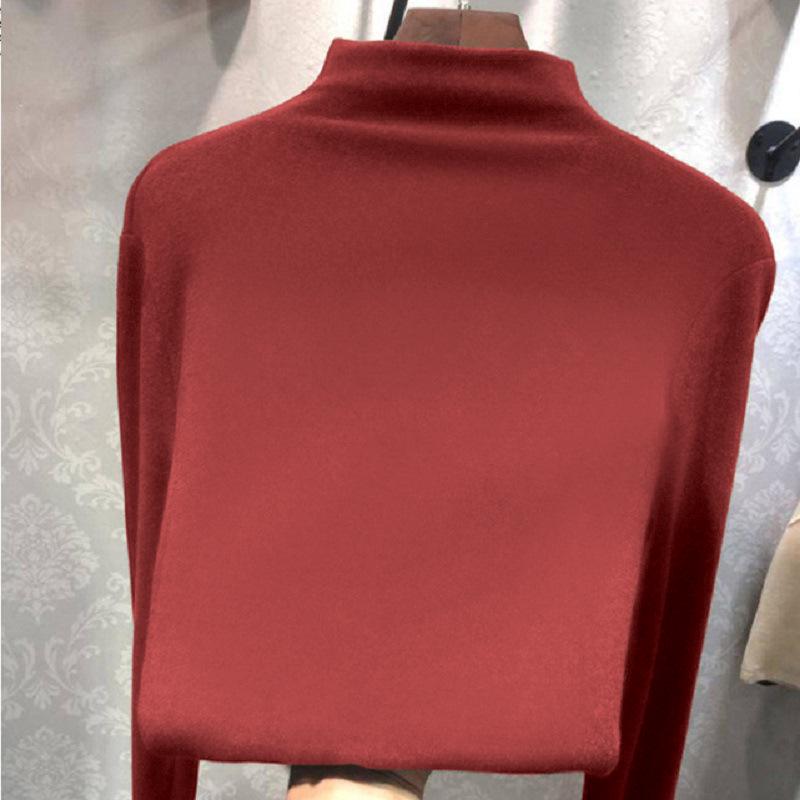 Теплая рубашка с длинным рукавом из двухстороннего бархата с начесом, приталенного кроя, с воротником-полувысоким, для женщин - однотонная, осень/зима.