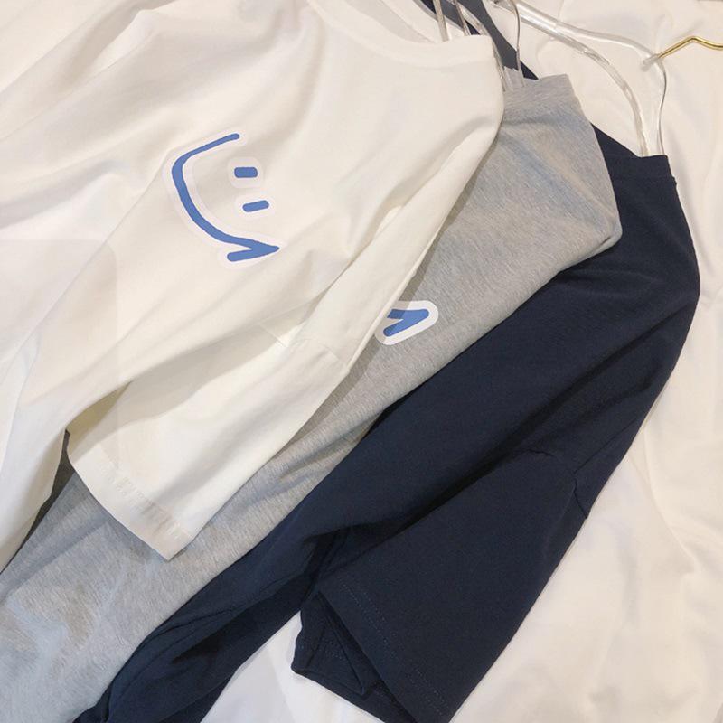 Корейское женское свободное платье-футболка средней длины со смайликом
