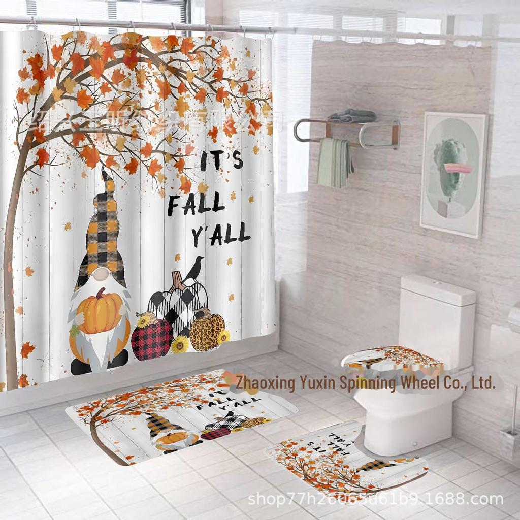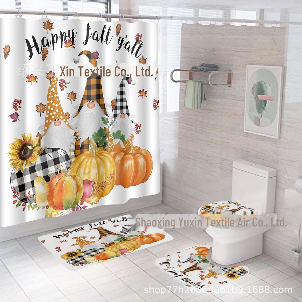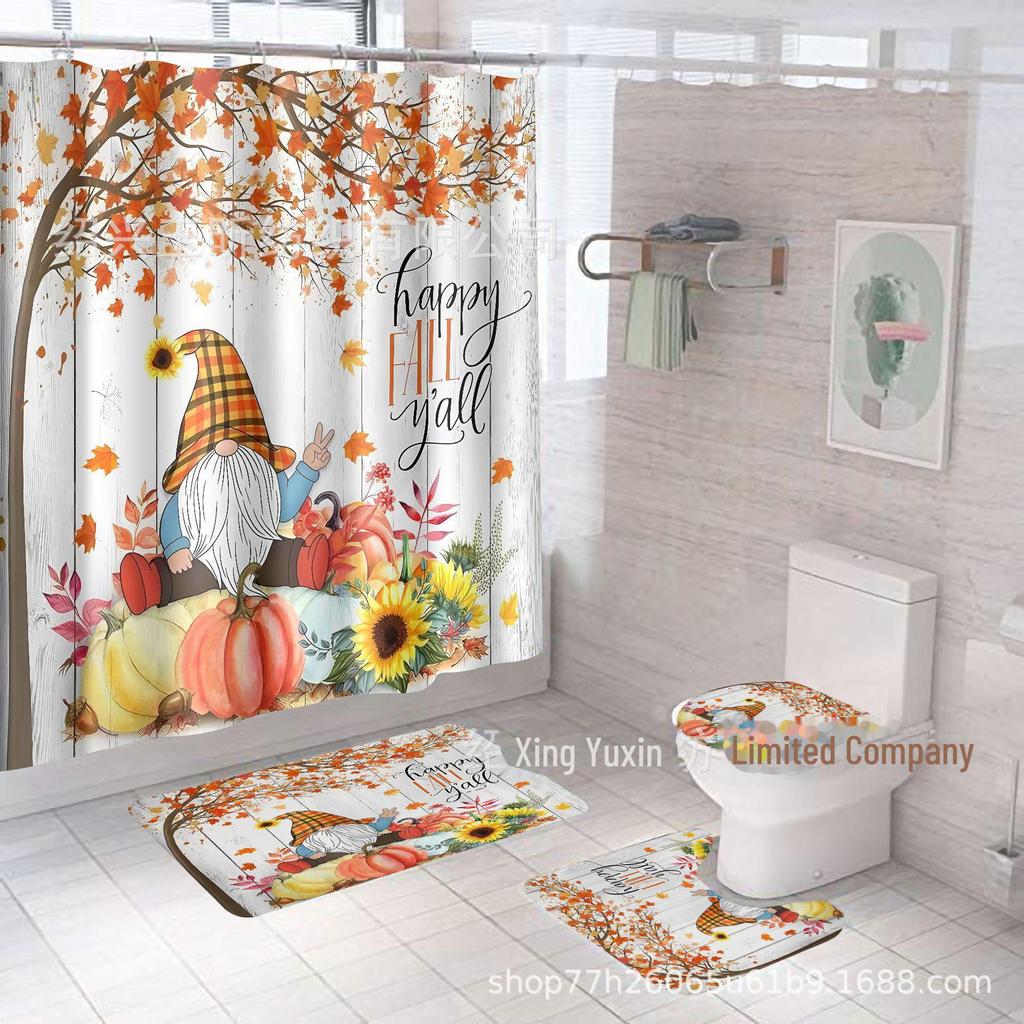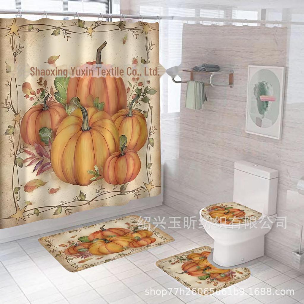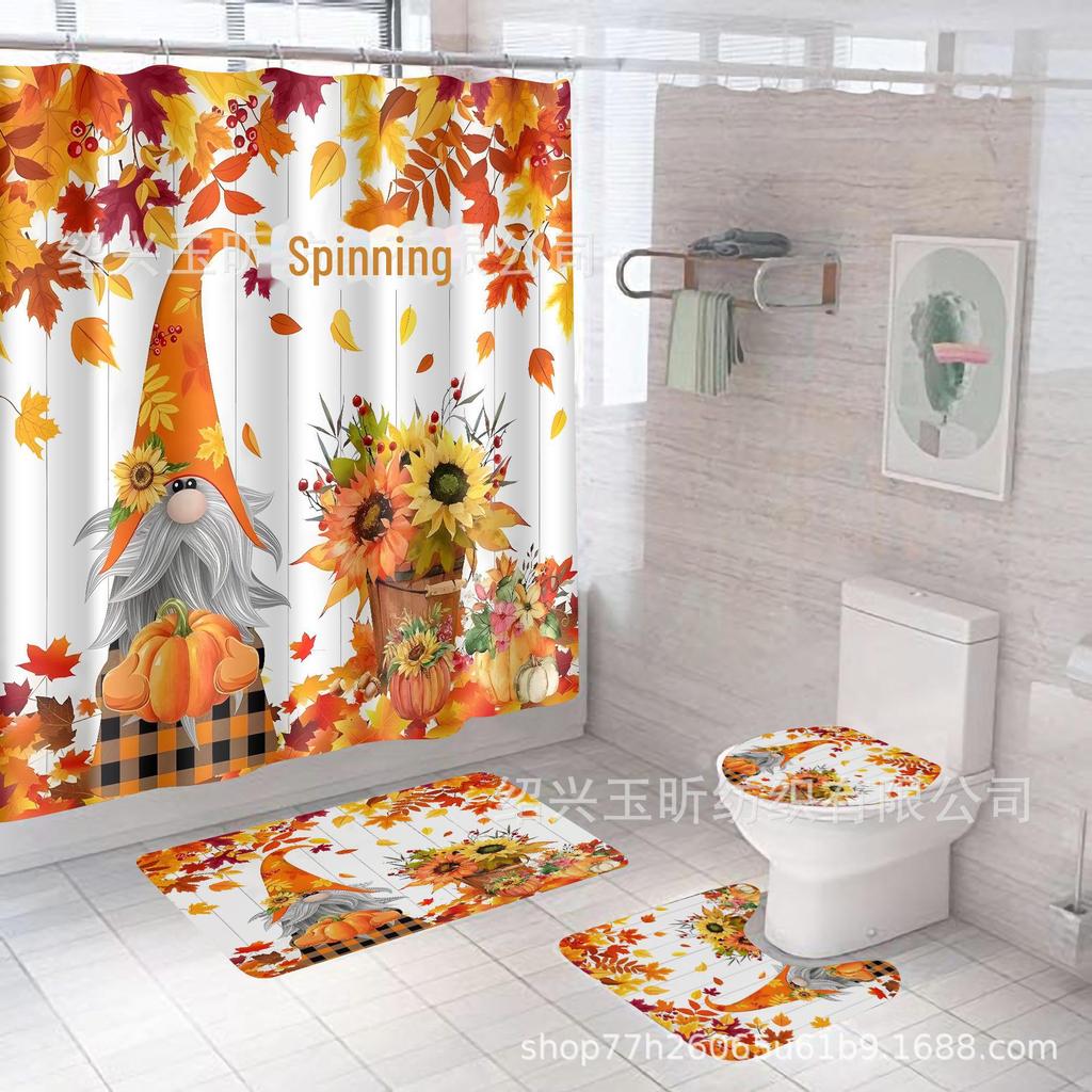 Комплект водонепроницаемых, устойчивых к плесени занавесок для душа с тыквой и кленовым листом на День благодарения - занавеска для разделительной двери без проколов для ванной комнаты