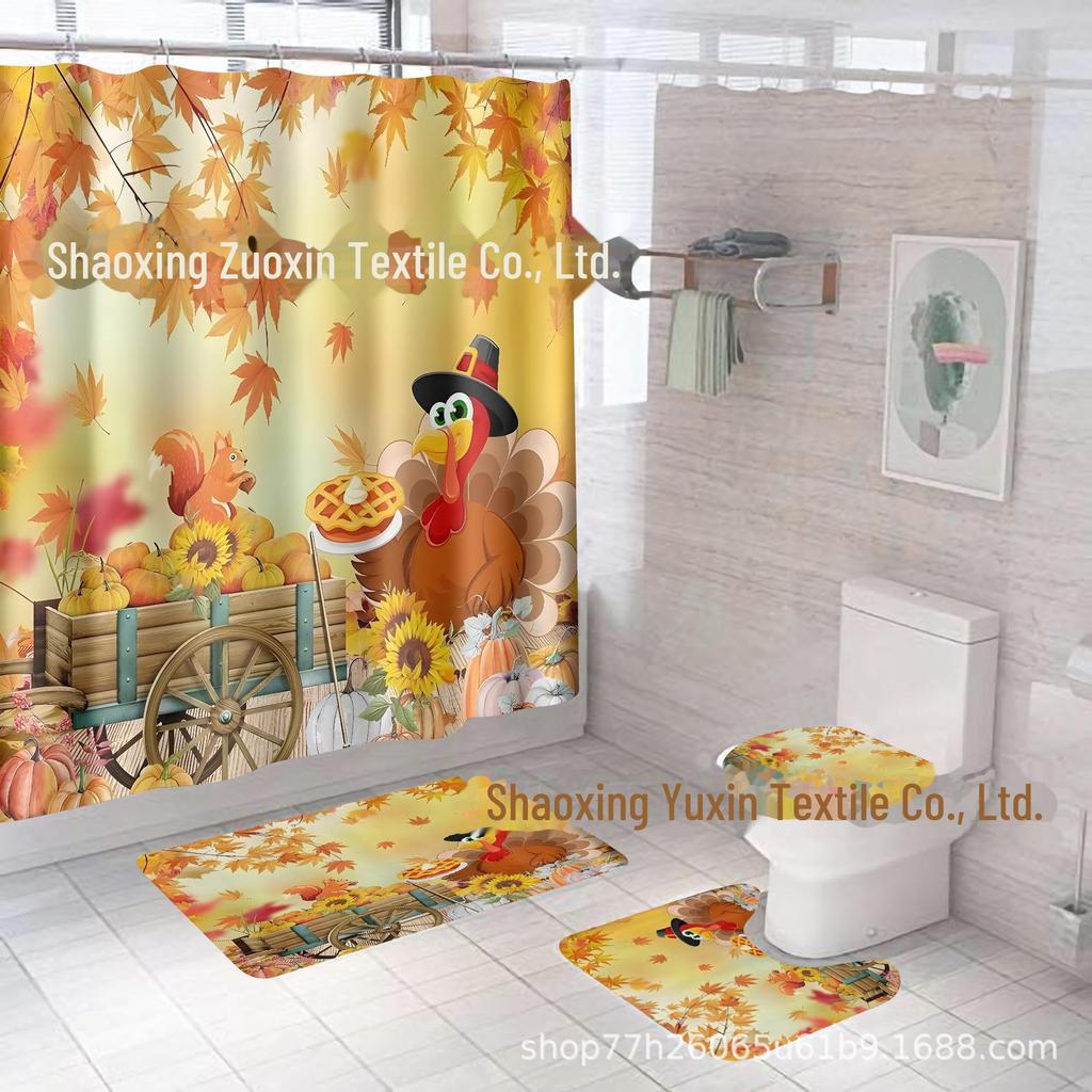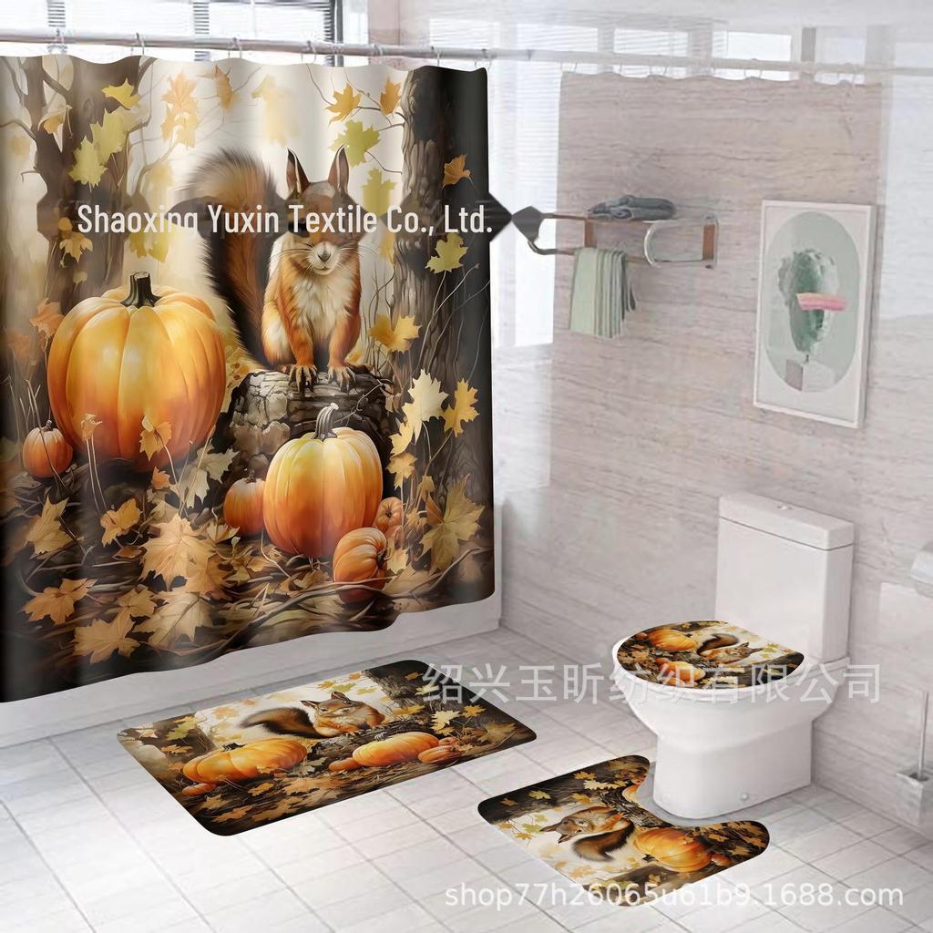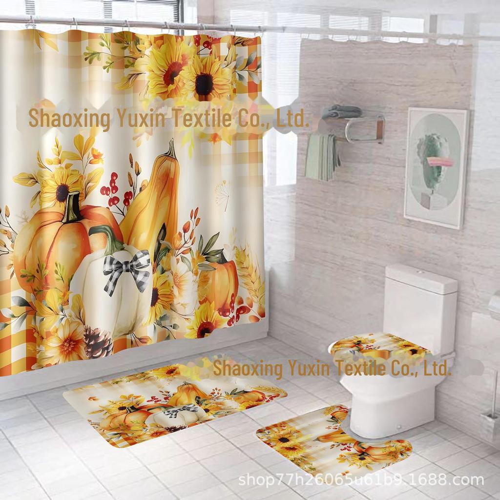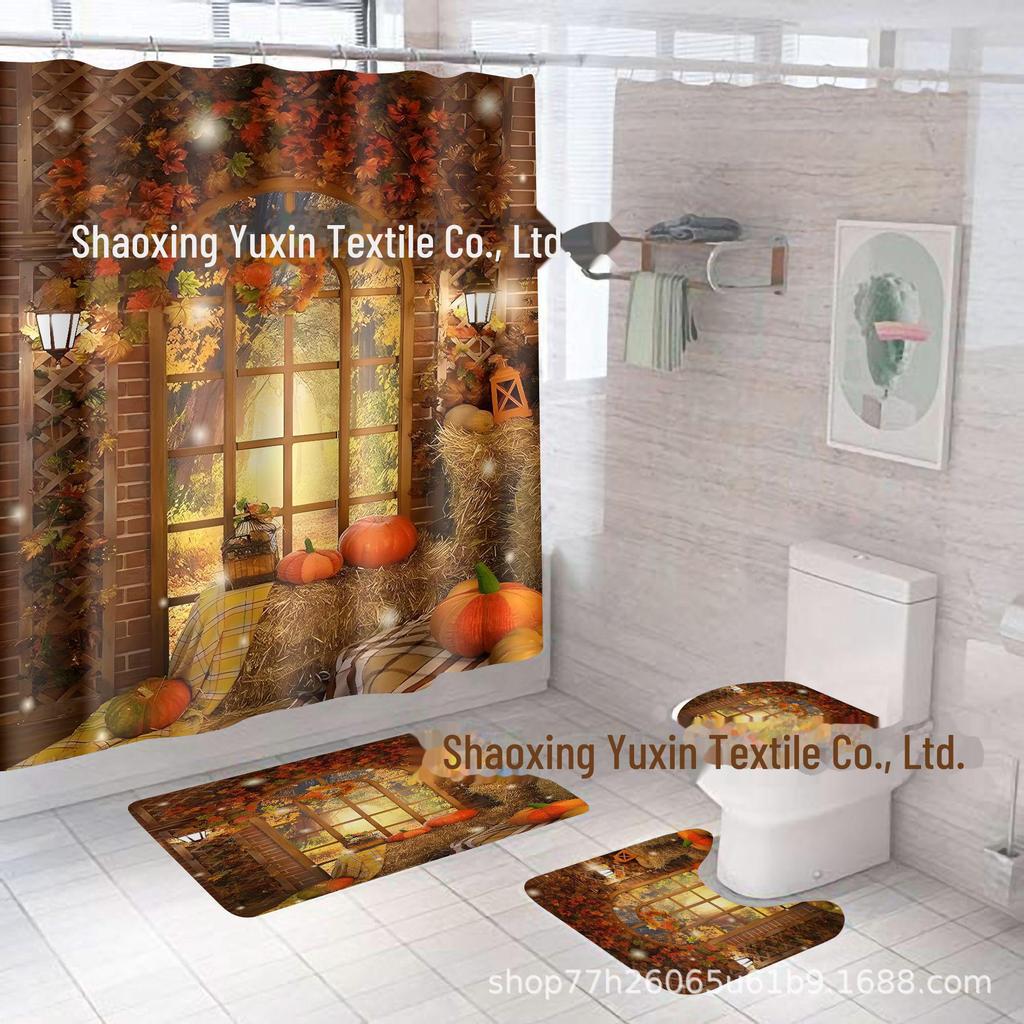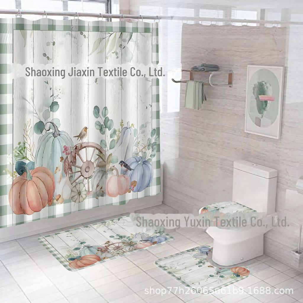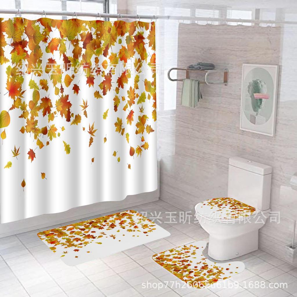 Комплект водонепроницаемых, устойчивых к плесени занавесок для душа с тыквой и кленовым листом на День благодарения - занавеска для разделительной двери без проколов для ванной комнаты