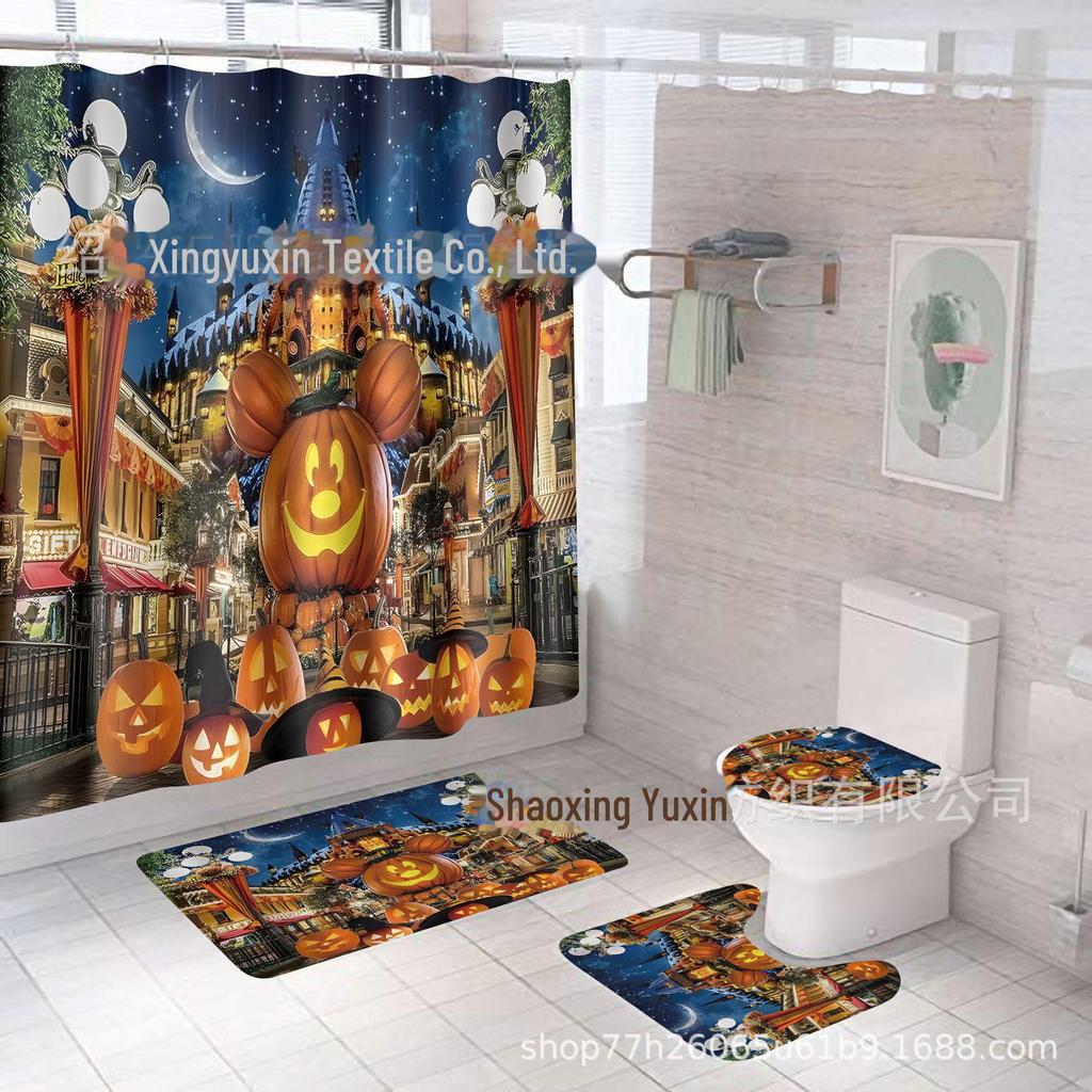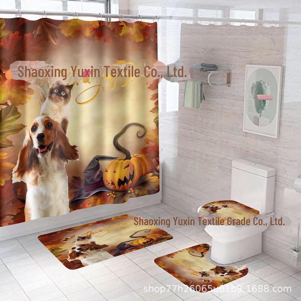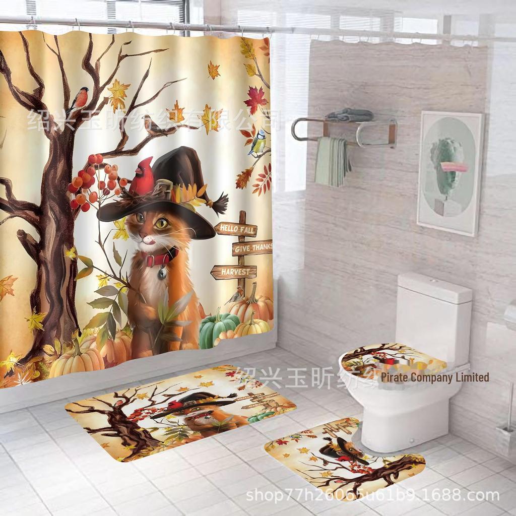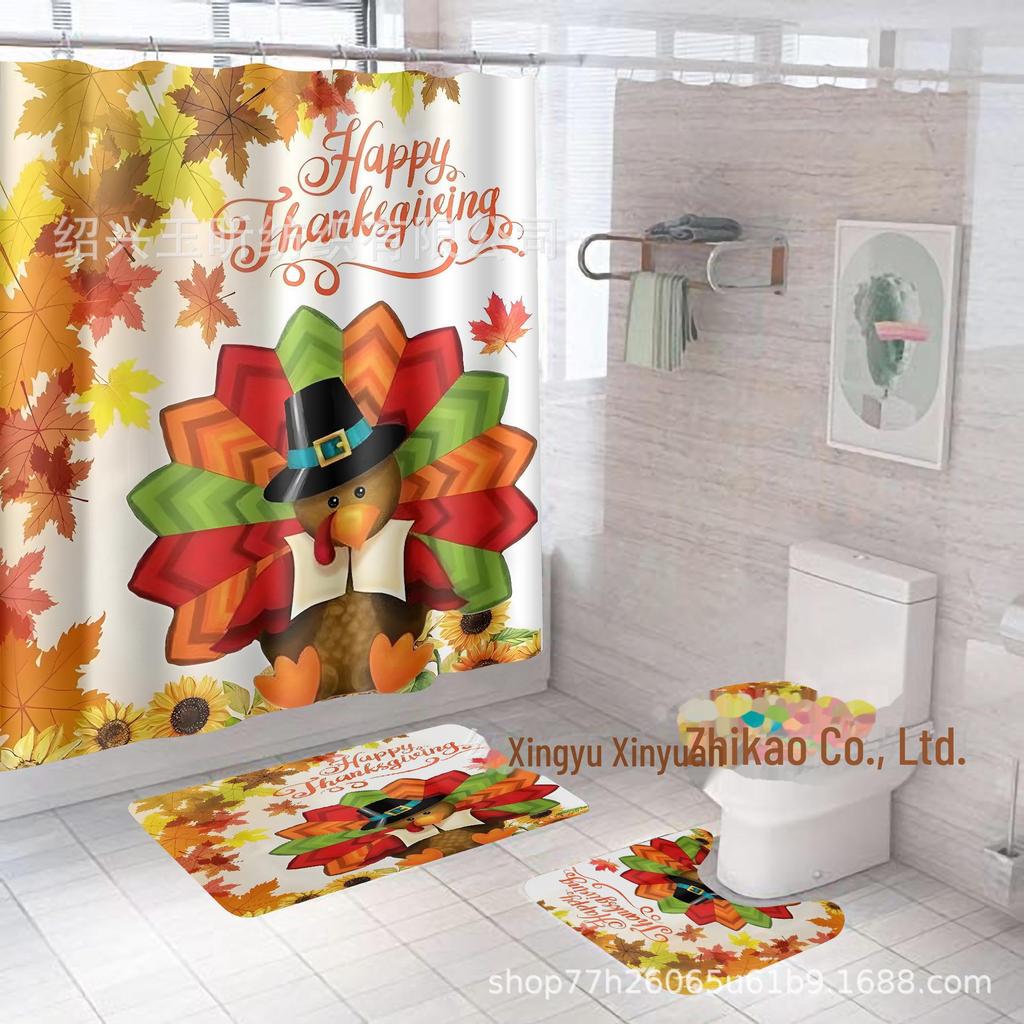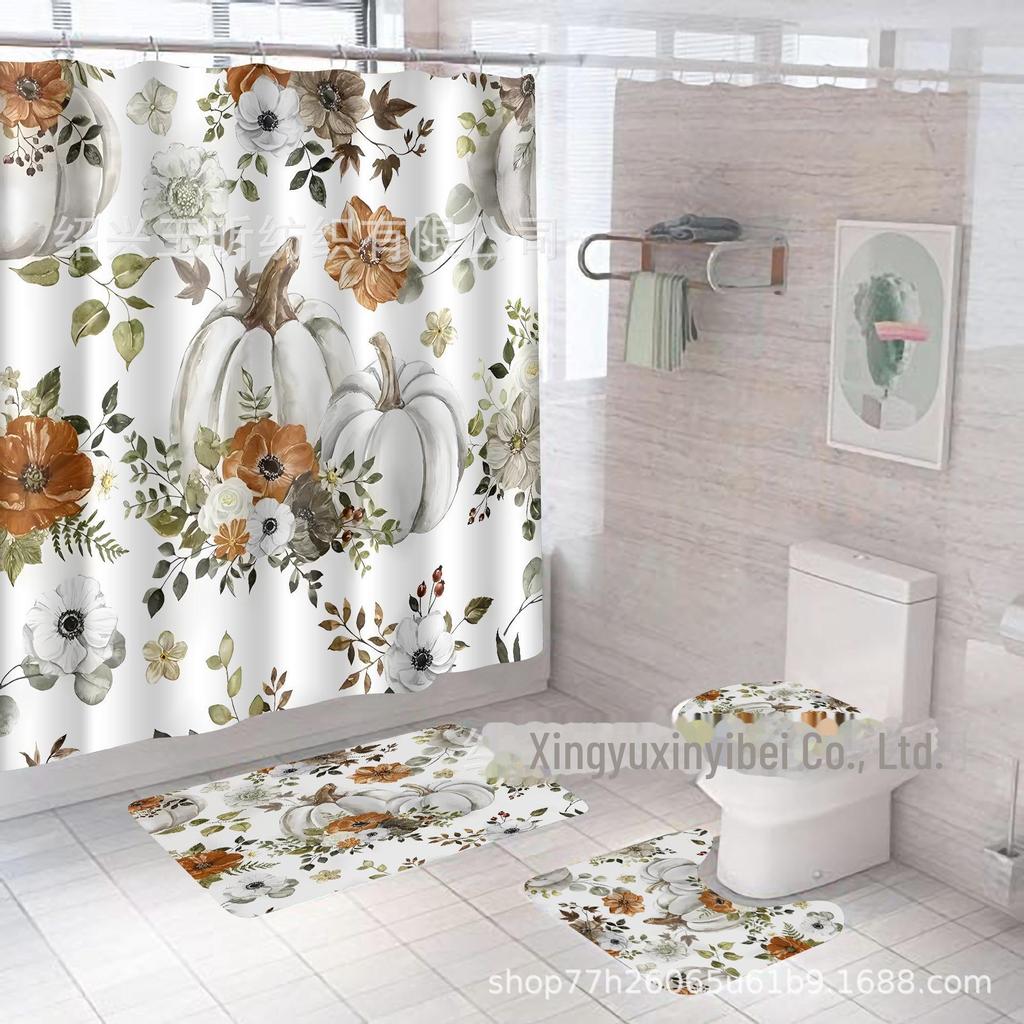Комплект водонепроницаемых, устойчивых к плесени занавесок для душа с тыквой и кленовым листом на День благодарения - занавеска для разделительной двери без проколов для ванной комнаты