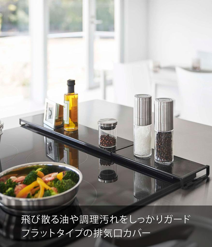 Yamazaki Jitsugyo 5733 Telescopic Exhaust Cover Flat Type Black x D10 x Tower Compatible with width Thin Oil Splash Guard 60cm 75cm IH Stove Cover
