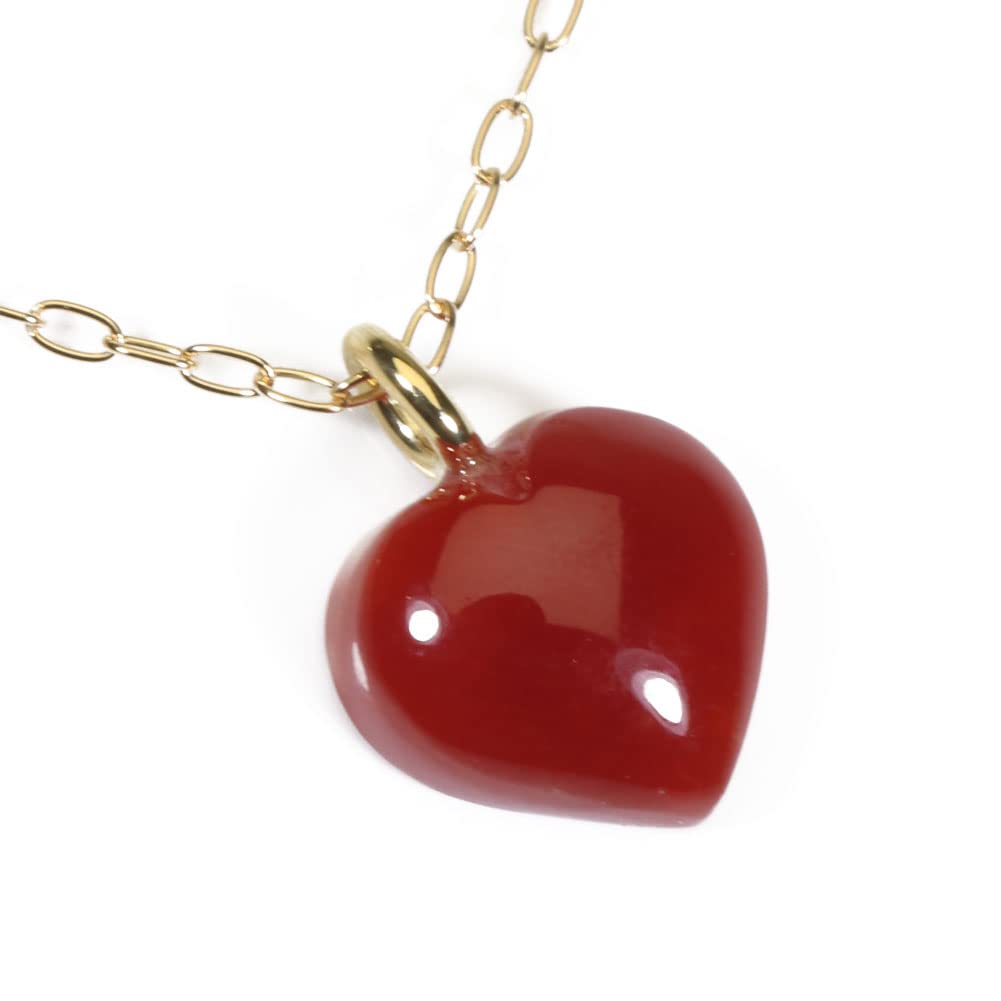 Подвеска-ожерелье Сердце Красный Коралл Кровяного Цвета из Префектуры Коти Одинарный K18YG Неокрашенный Красный Женский
