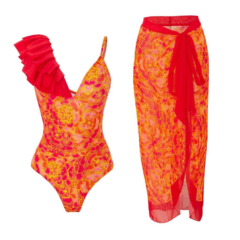 Новый сексуальный цельный купальник для женщин, бикини, шифоновая юбка с оборками и принтом, купальник — купить товар онлайн с бесплатной доставкой по всему миру!